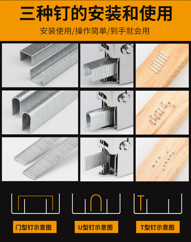 手动三用打钉枪码钉枪木工气动马丁枪U型钉T型门型打钉枪工具