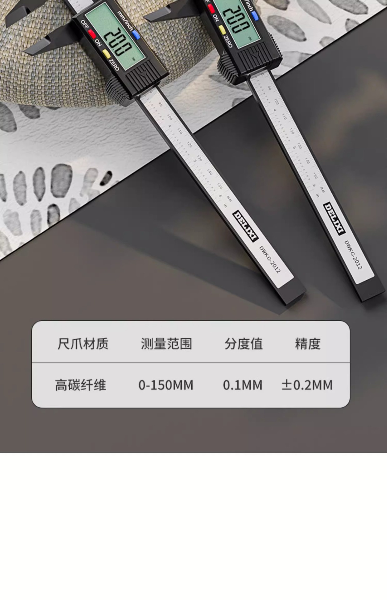 - 【1把装】数显碳纤维150mm-(送收纳盒)