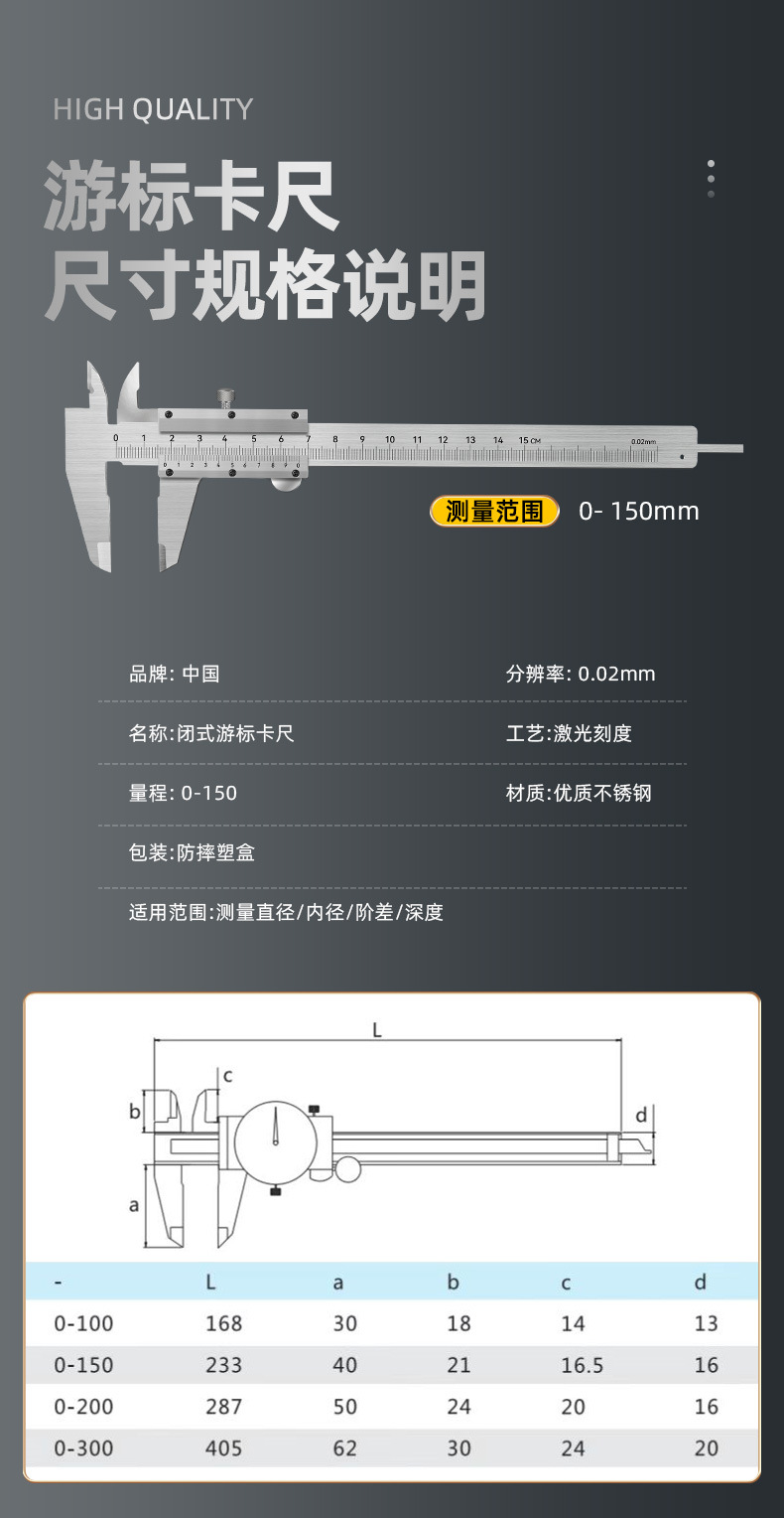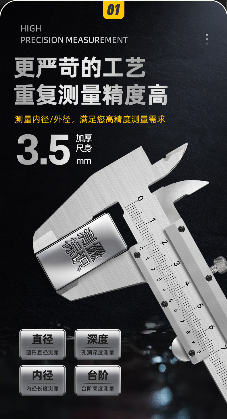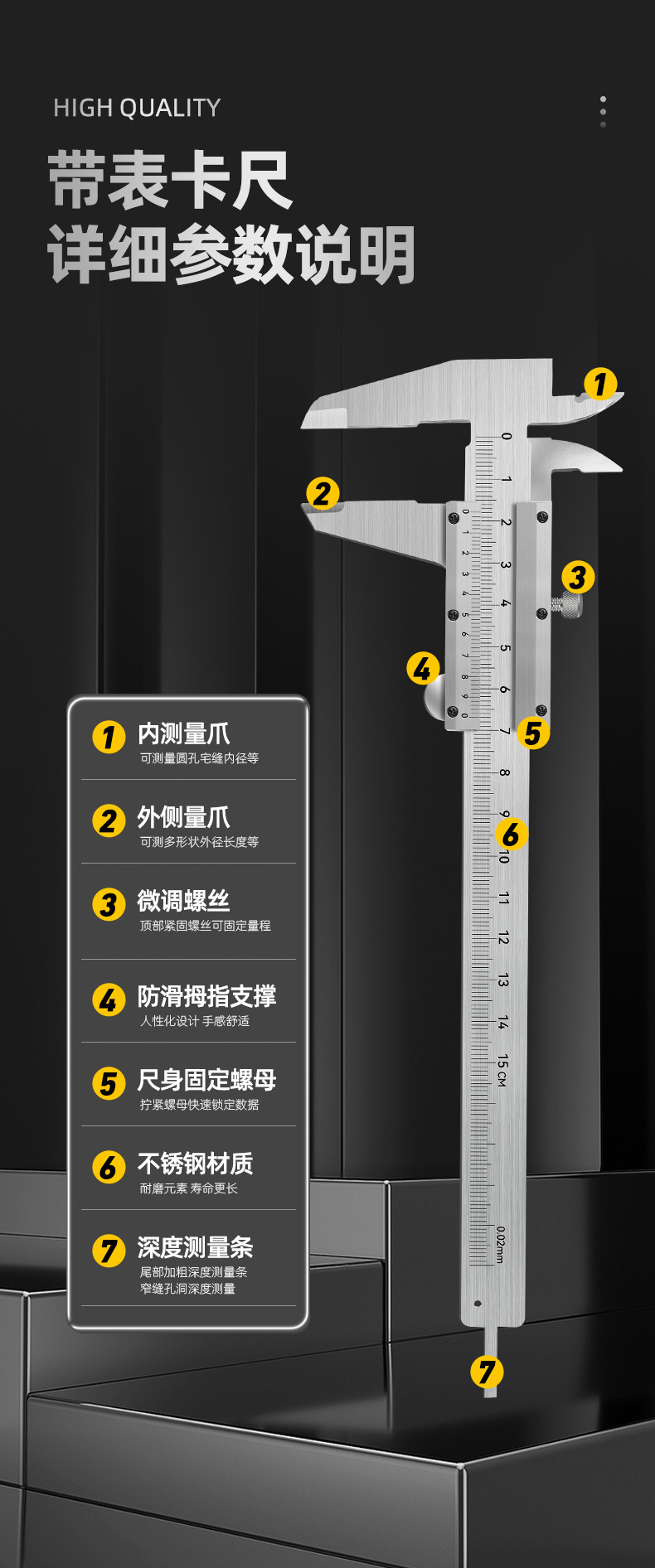 游标卡尺深度尺机械尺靠尺深度尺教学150mm卡尺