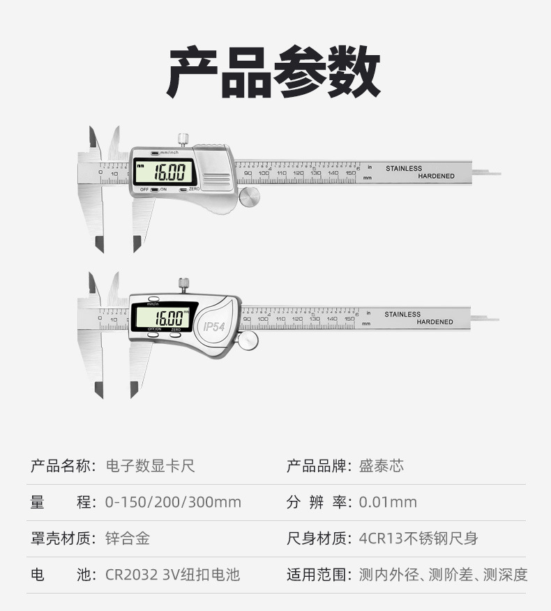 数显游标卡尺中性防水高精度不锈钢电子工业0-150-200-300mm