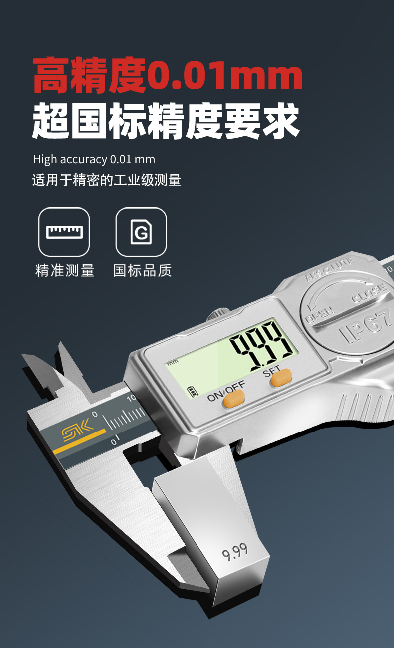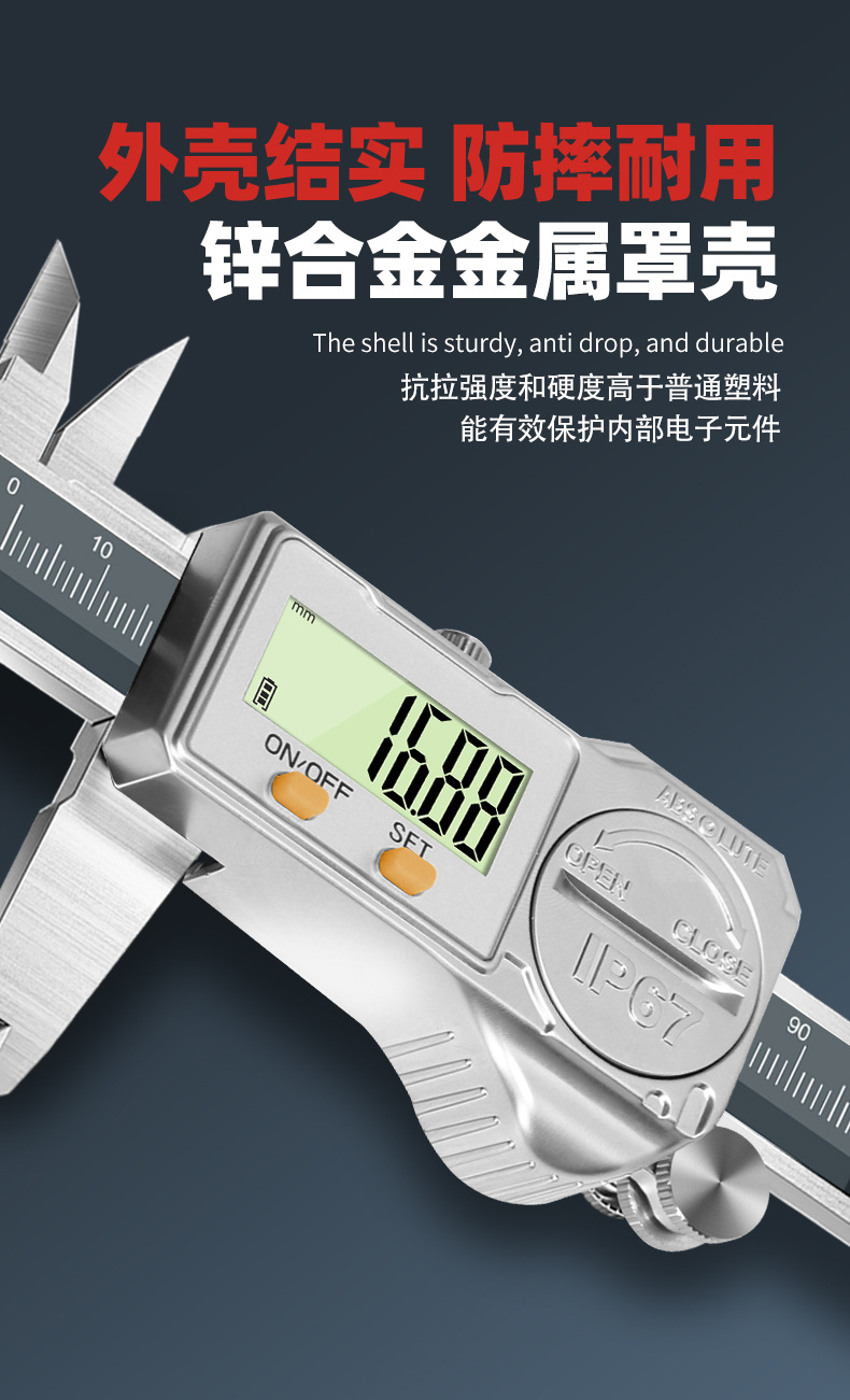 防水防油ip67数显游标卡尺高精度不锈钢工业级卡尺