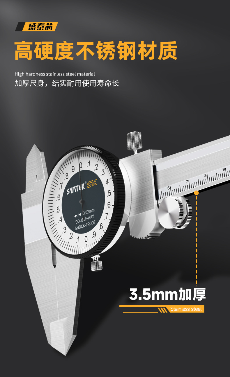 带表卡尺0-150-200-300mm工业级高精度带表不锈钢卡尺
