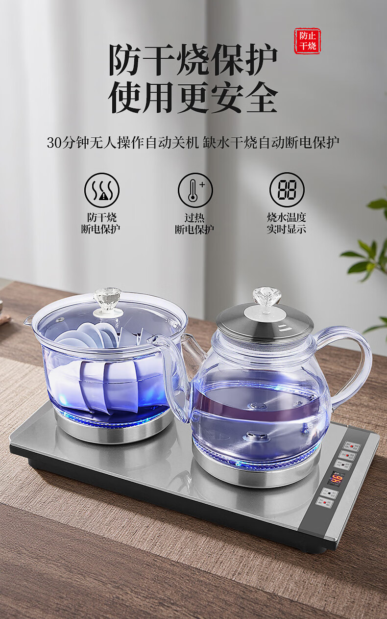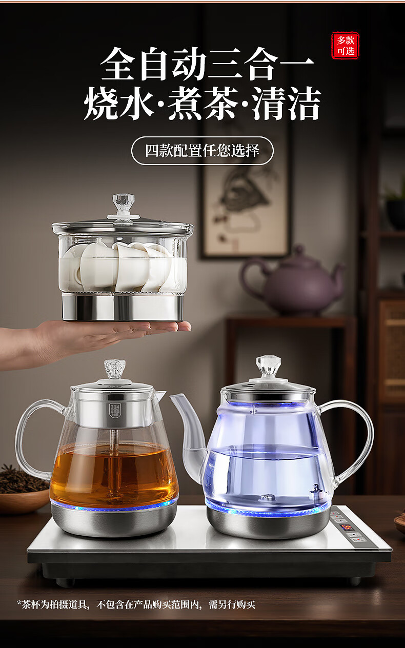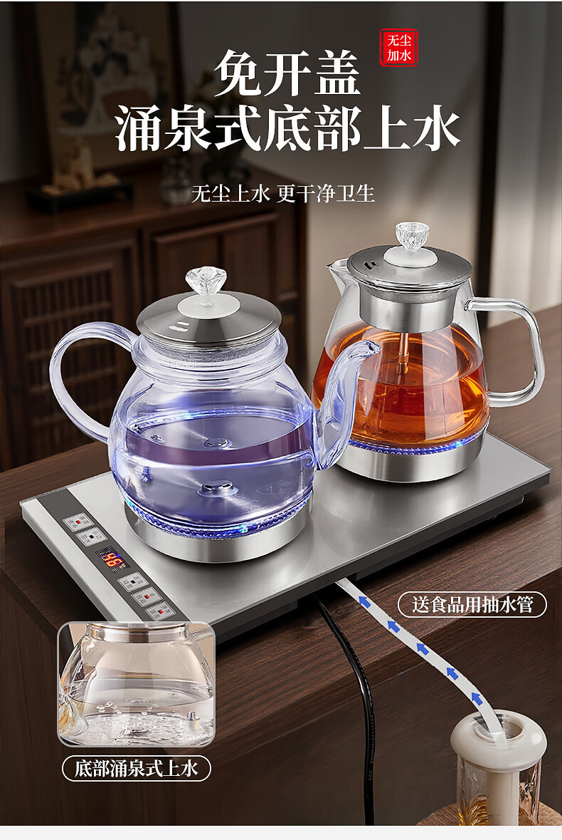 自动底部上水壶电热水壶泡茶具茶桌抽水玻璃炉电茶炉煮茶器