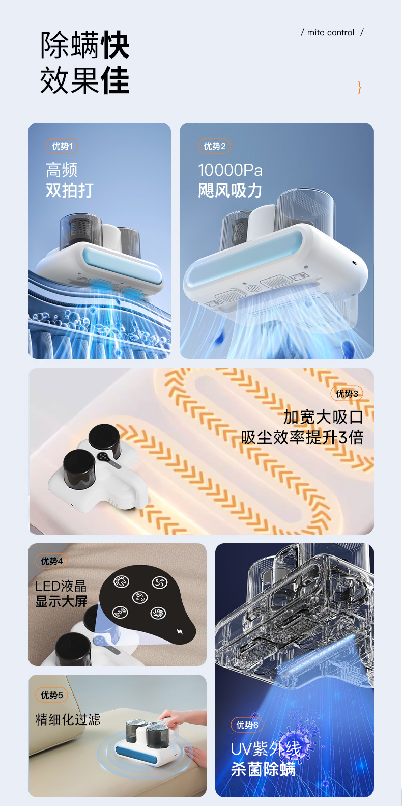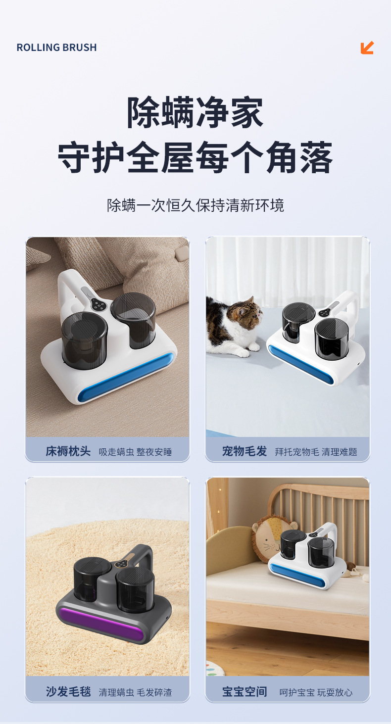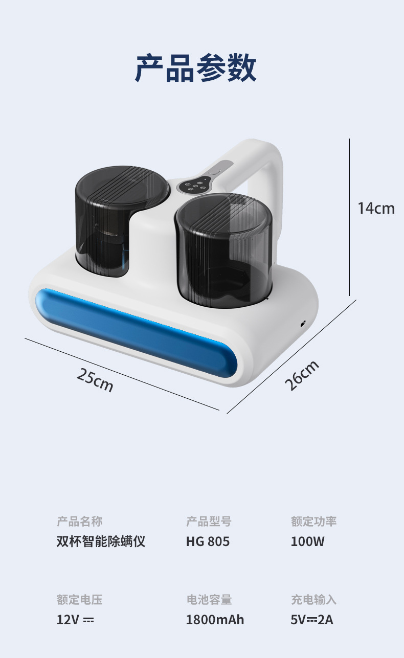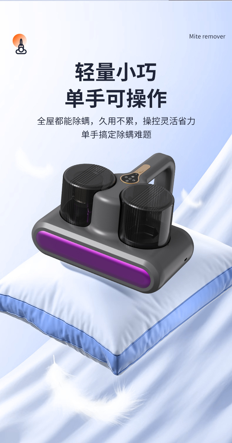 双杯除螨仪有线家用床上手持吸尘器双尘杯大吸力高效过滤系统