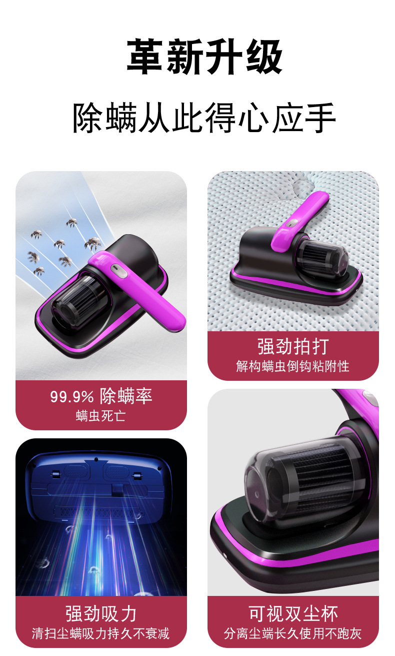 除螨仪便携无线床上家用滚刷吸尘除螨仪紫外线杀菌除螨仪