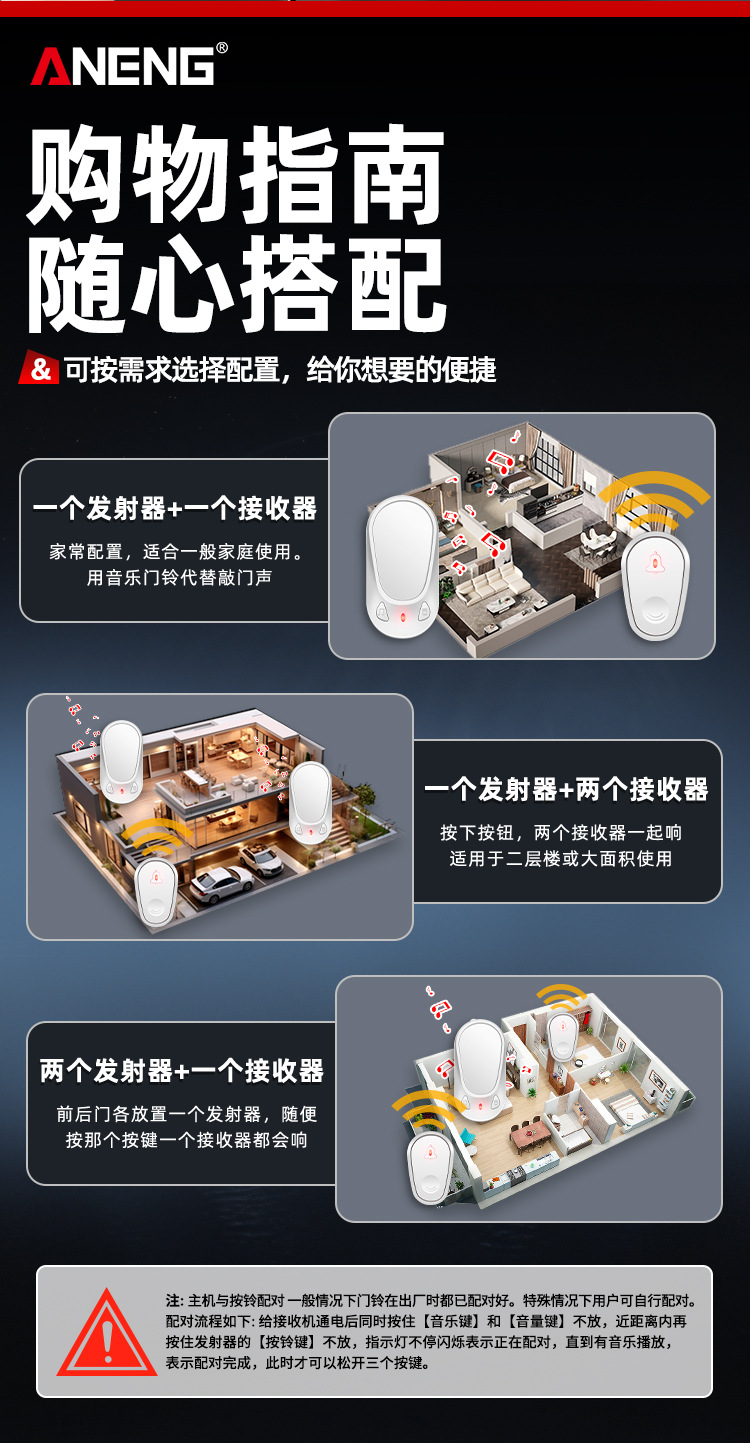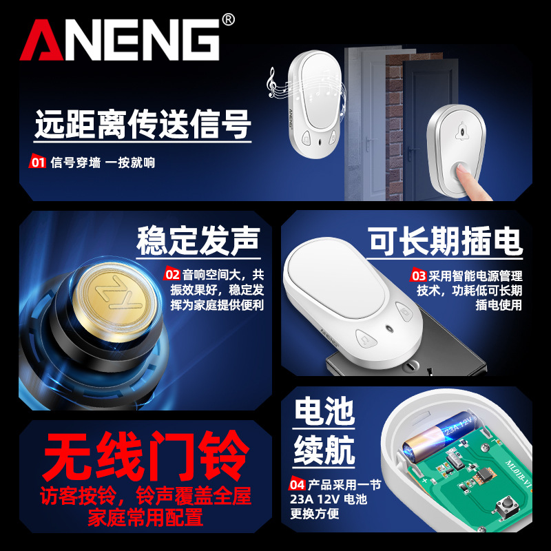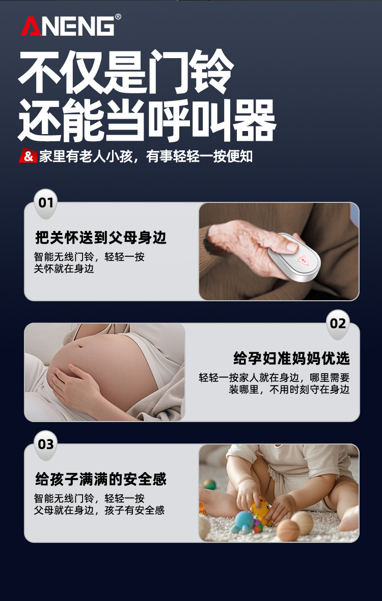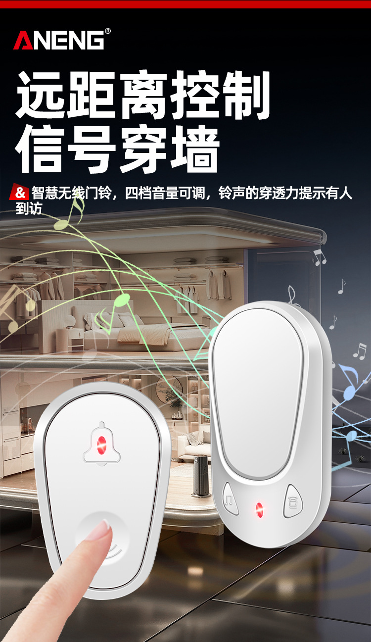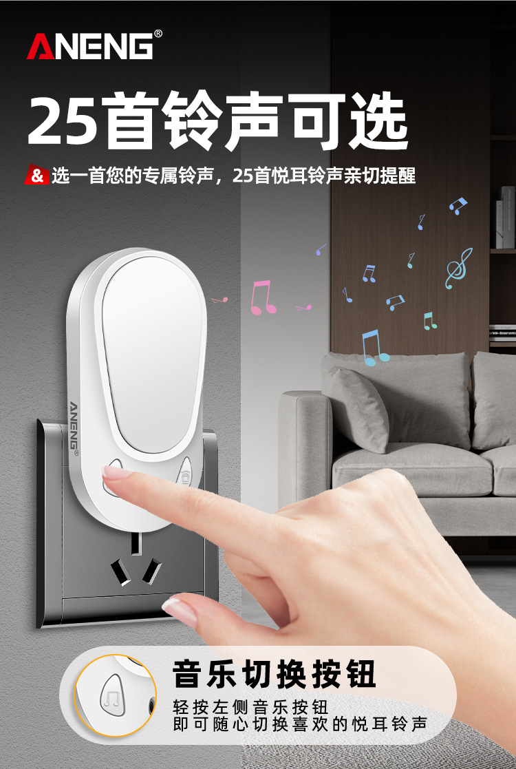 门铃无线家用智能超远距离电子遥控防水门铃一拖二老人叮咚呼叫器