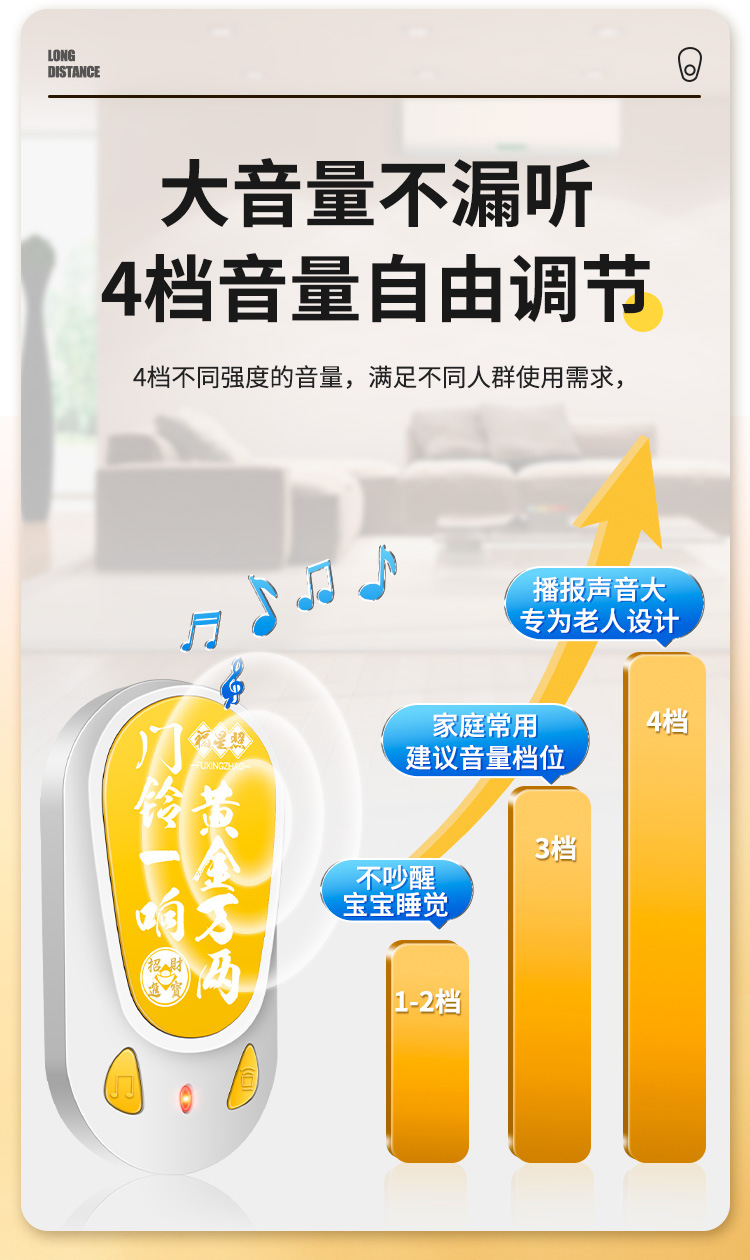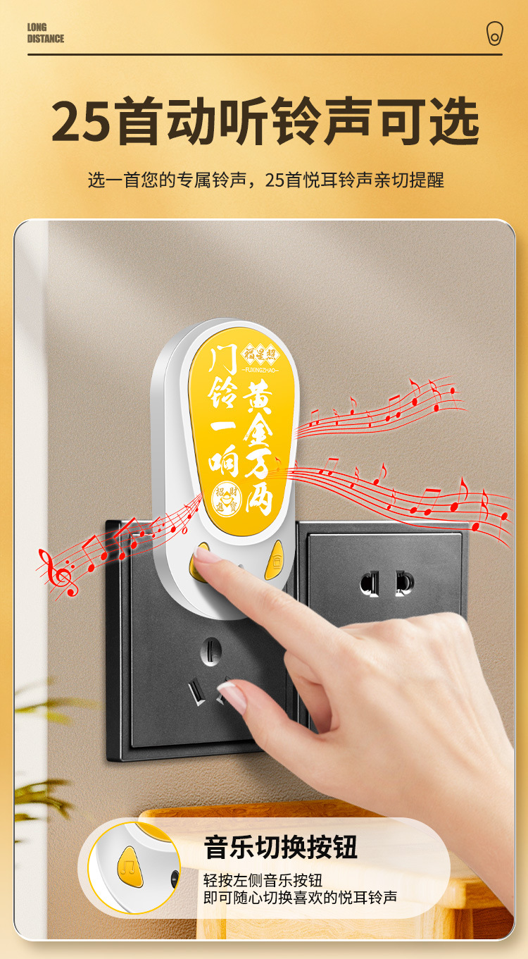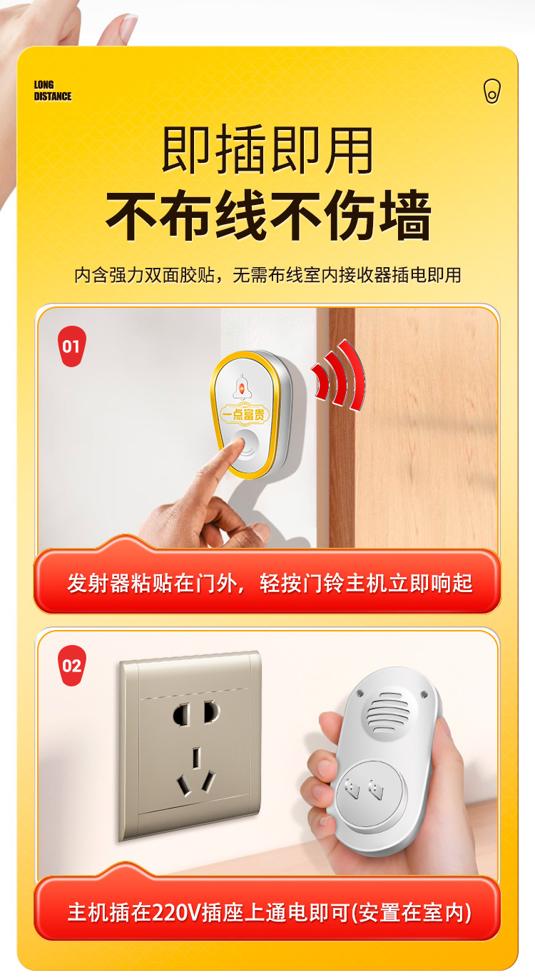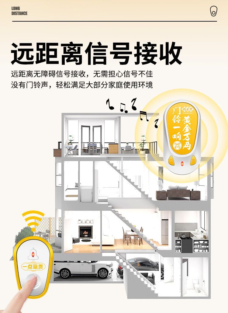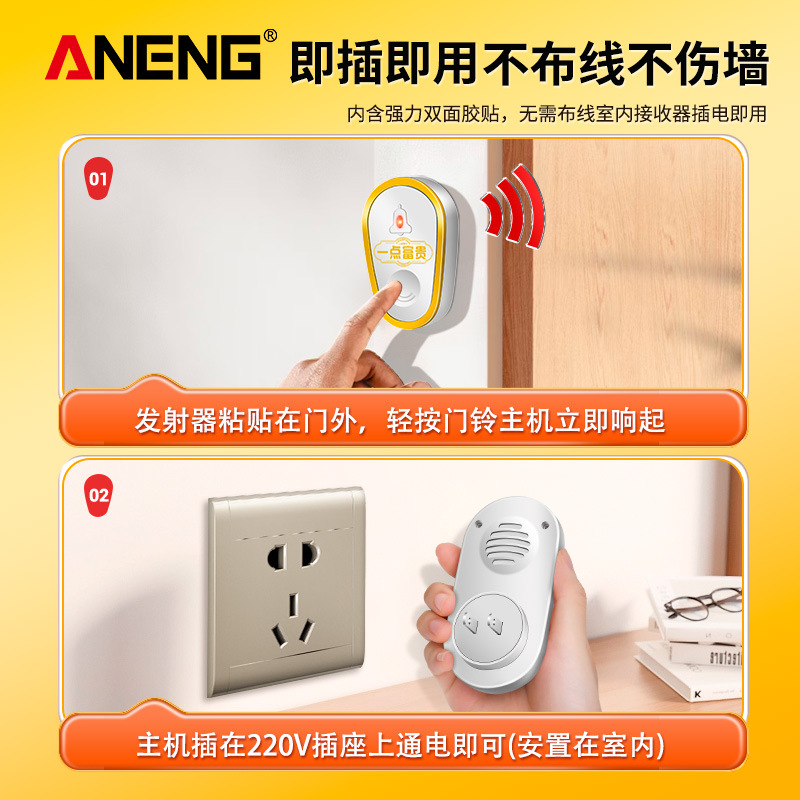 ANENG无线门铃远距离电子遥控智能门铃家用老人床头呼叫器免打孔