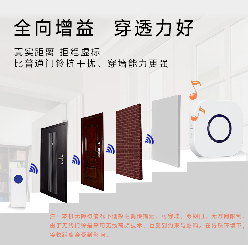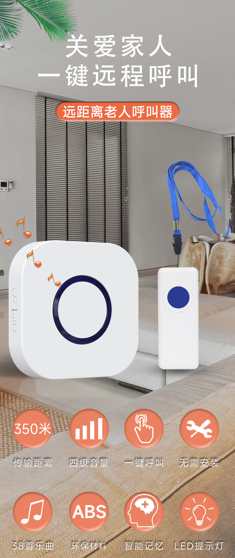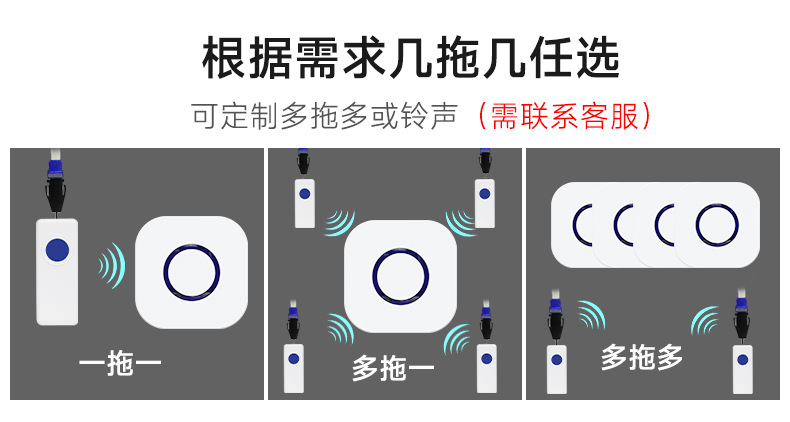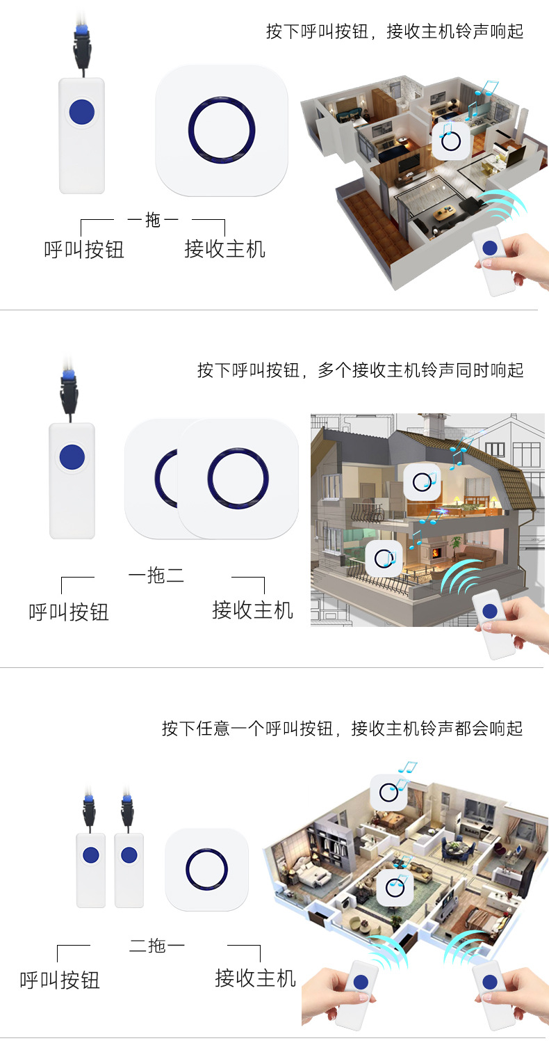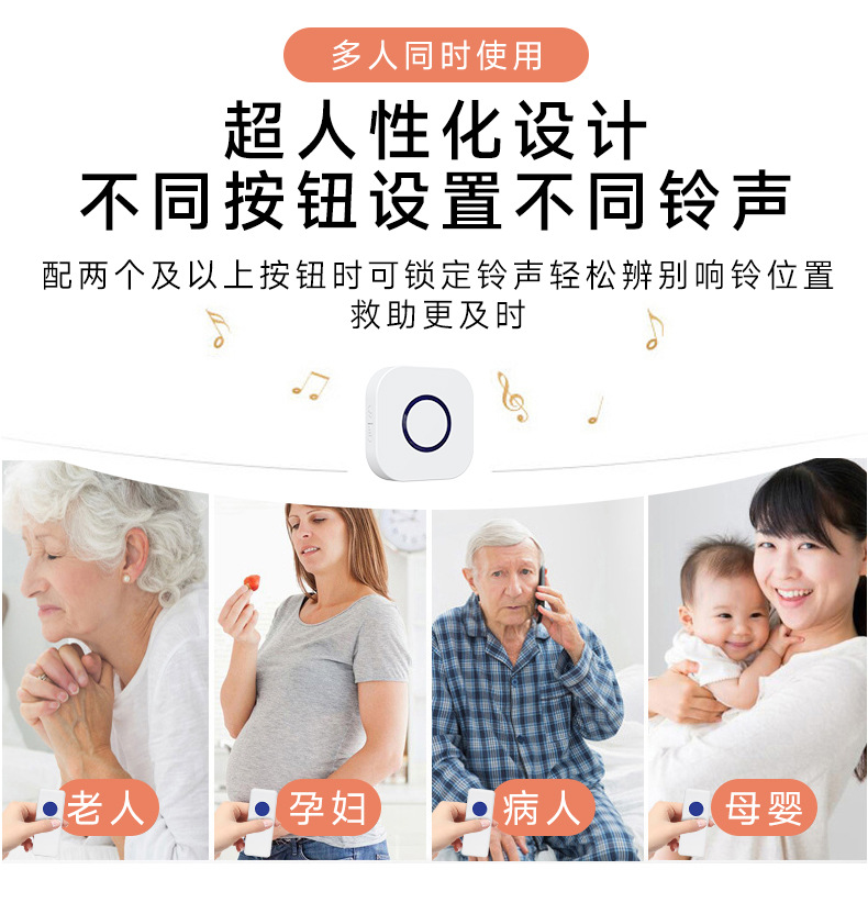 远距离老人呼叫器长续航电子无线遥控门铃可穿墙防水看护铃智能