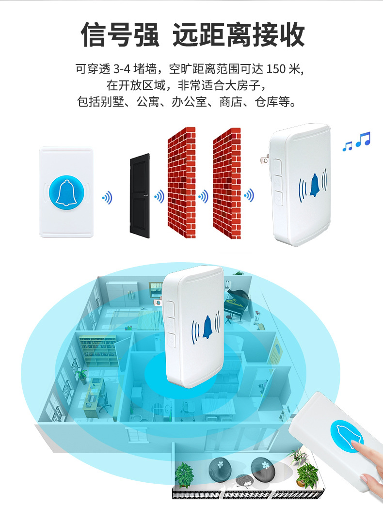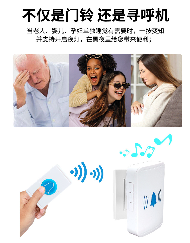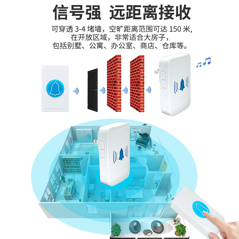 无线门铃家用呼叫器防水远距离电子遥控呼叫器欧规美规英规适用