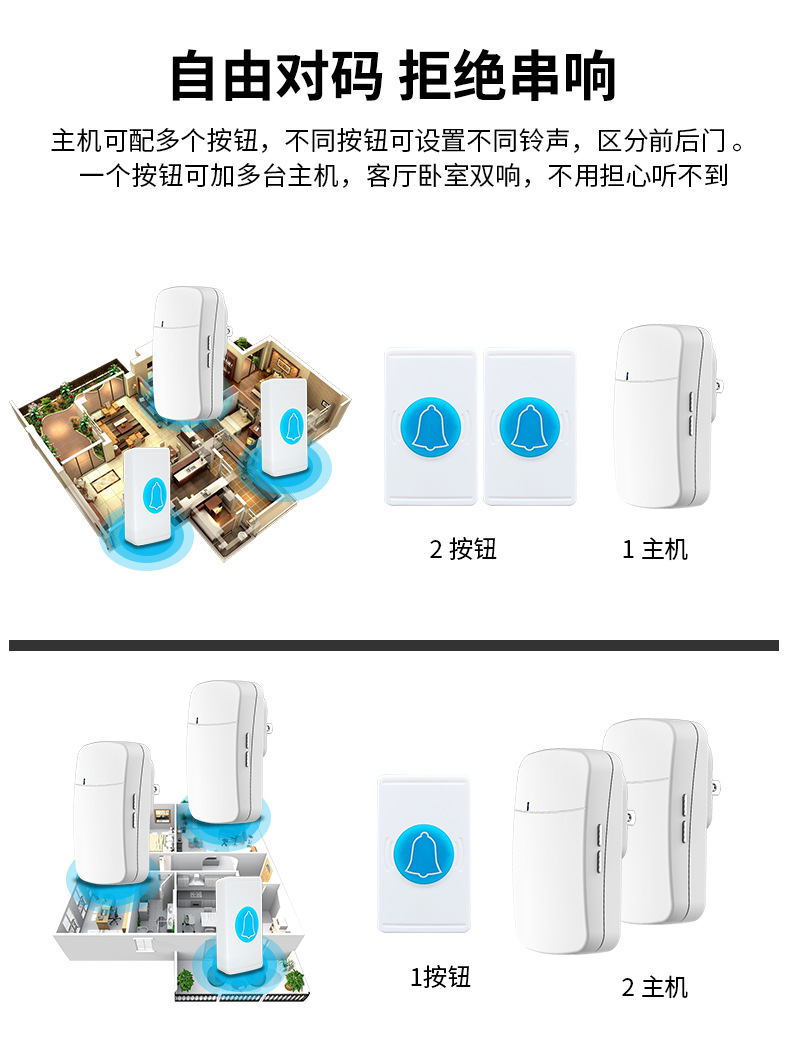 无线门铃家用免布线老人小孩叮咚呼叫器无线智能门铃美规欧规英规
