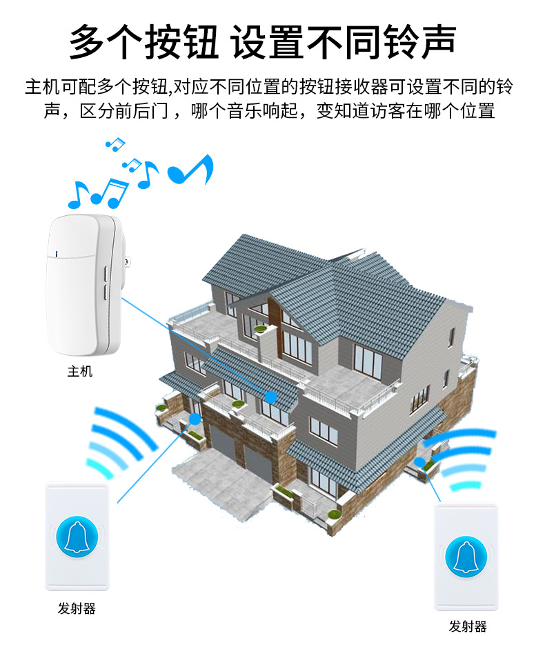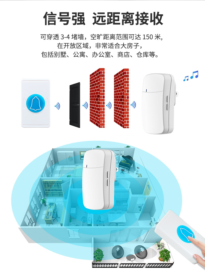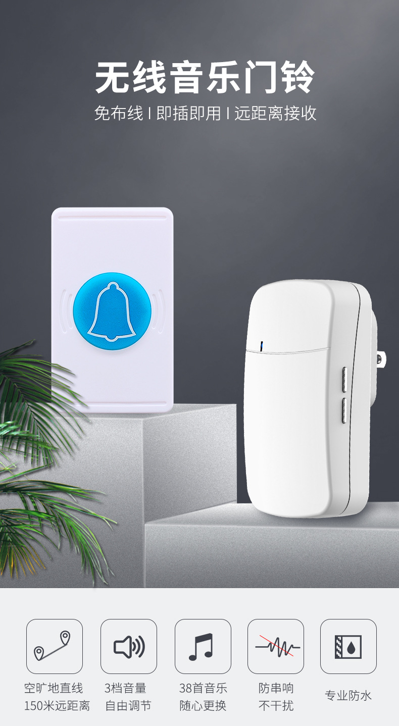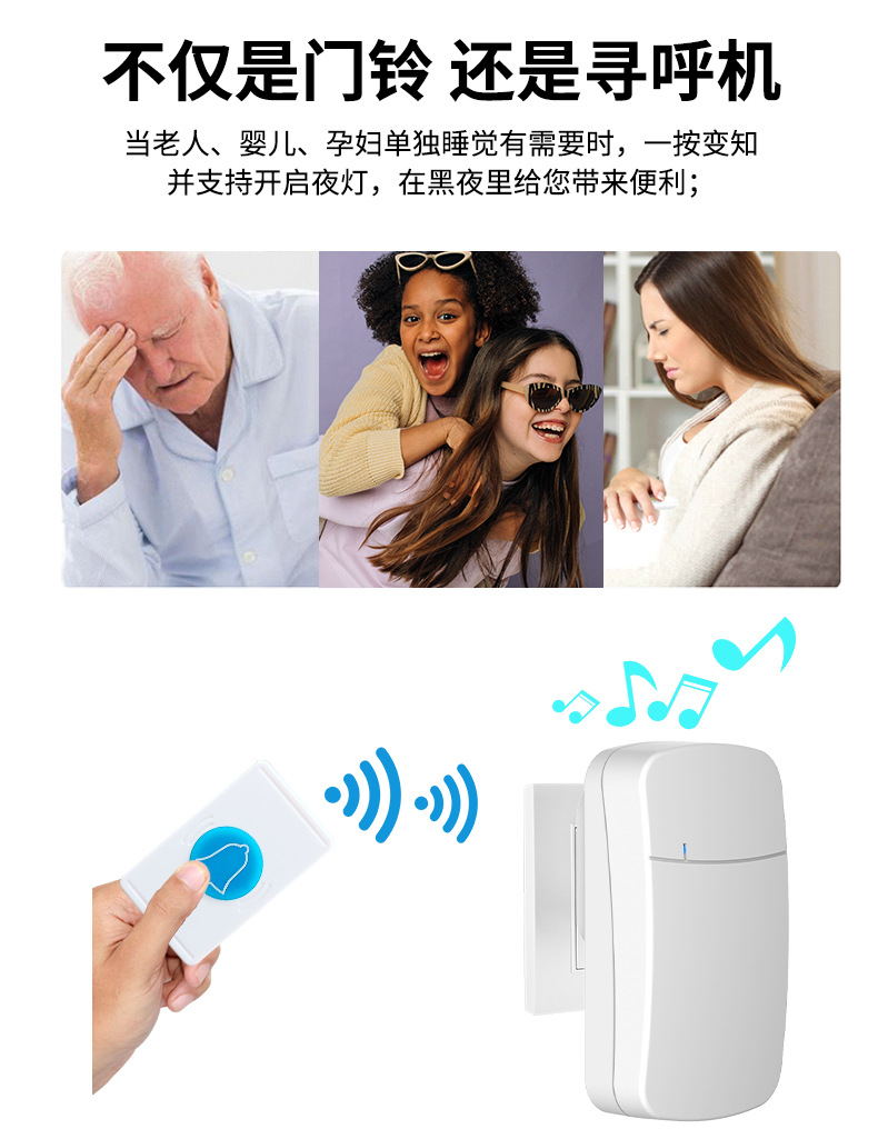 门铃无线家用智能超远距离电子遥控数码门玲小孩老人叮咚呼叫器