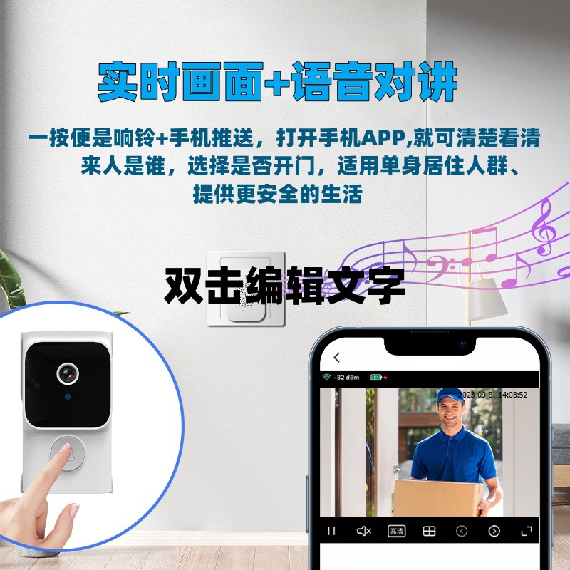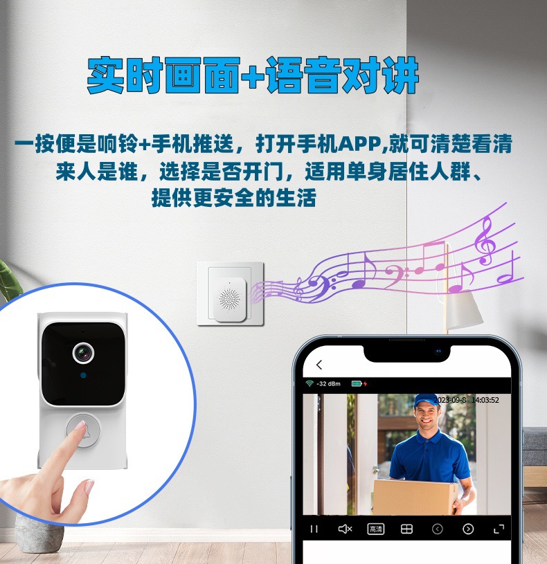 新品涂鸦视频智能可视门铃手机远程语音对讲高清夜视红外门铃