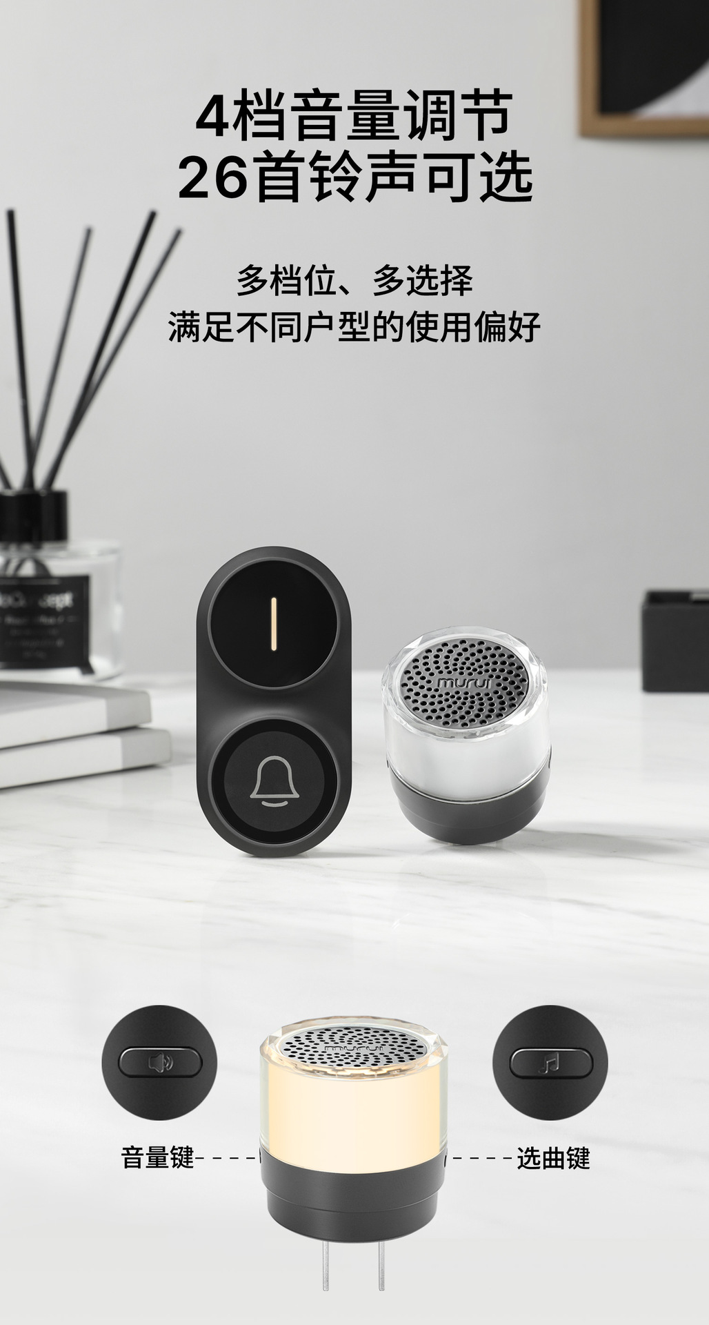 - Pro白【楼上楼下同时响】1高贵黑按钮+2响铃