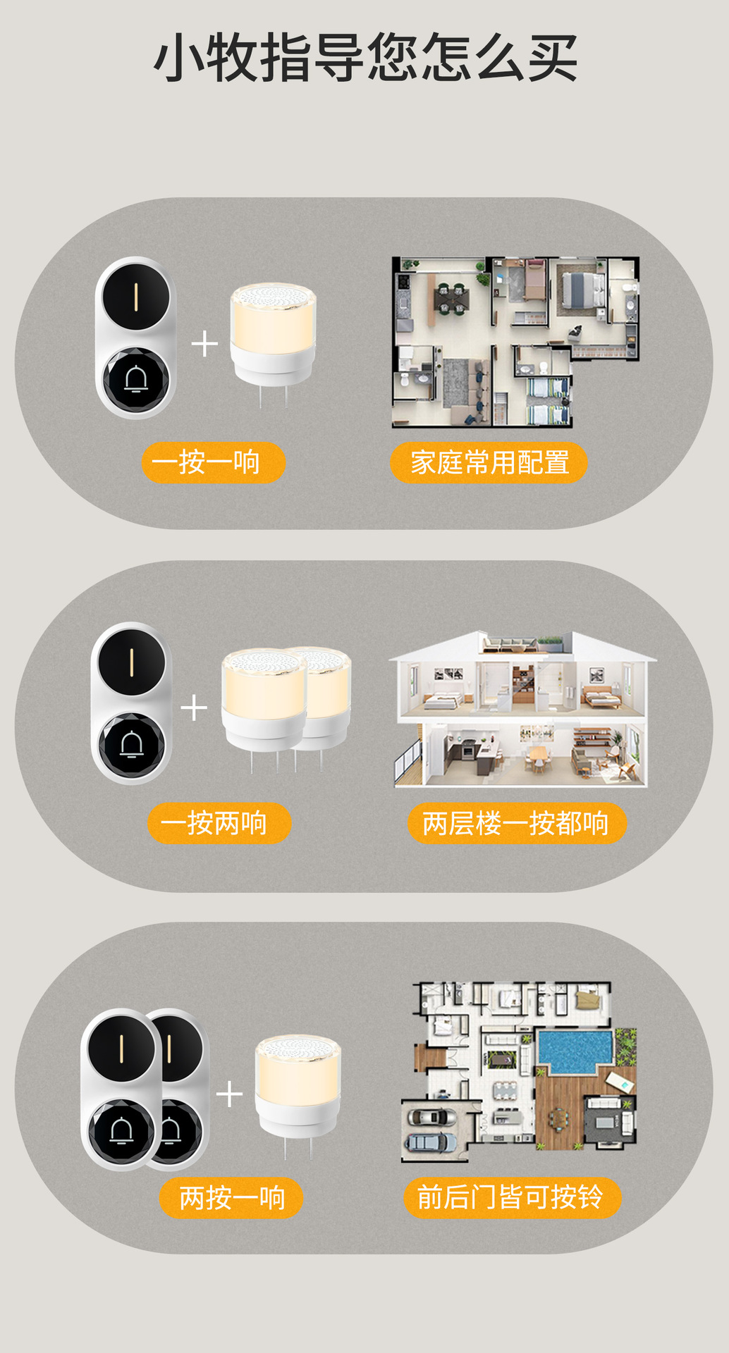 - Pro白【楼上楼下同时响】1瑰丽橙按钮+2响铃