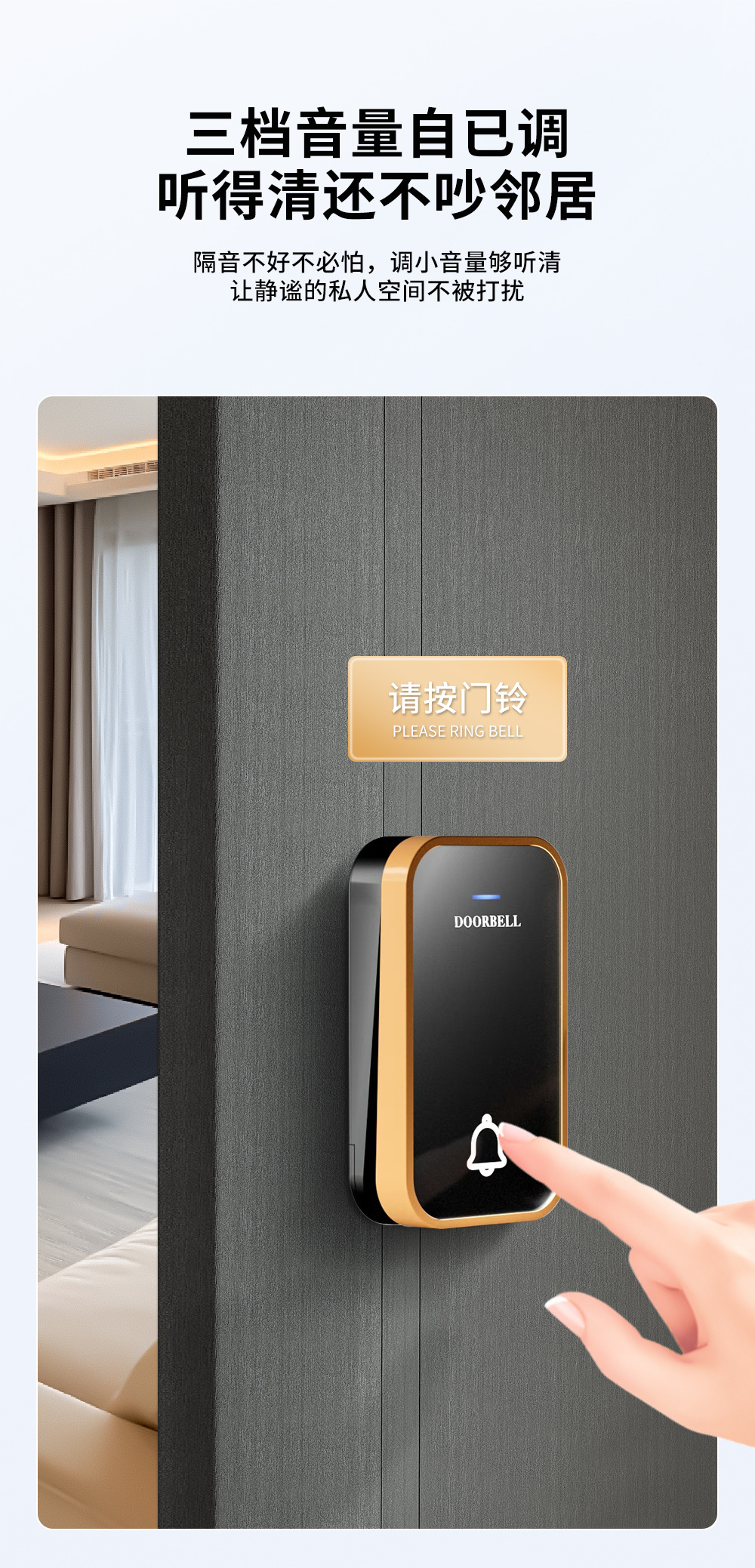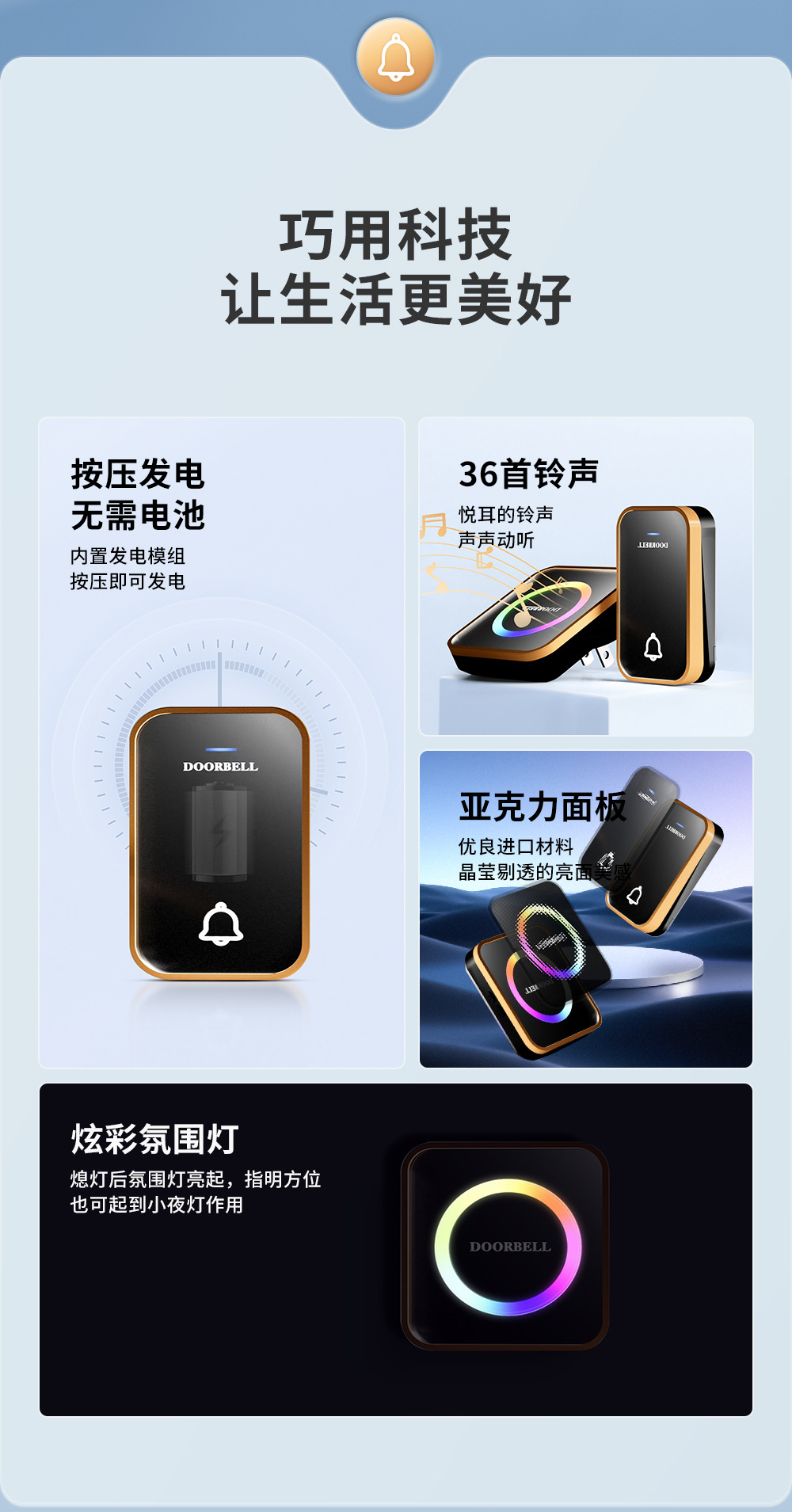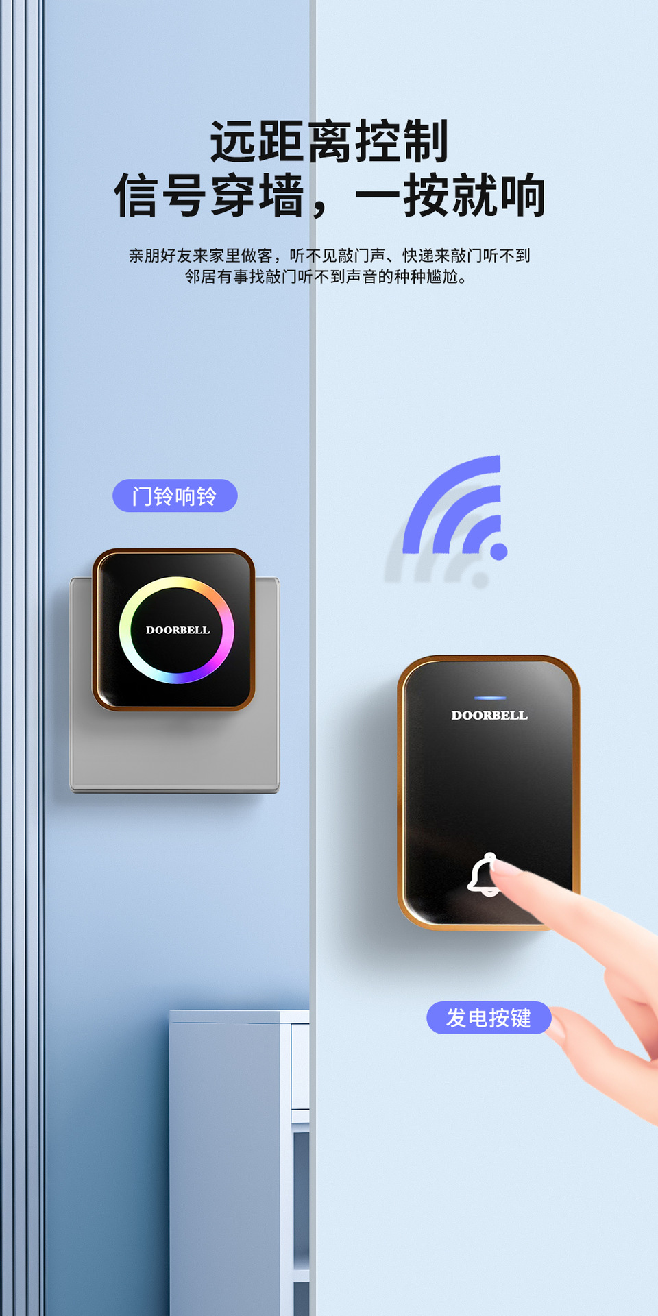 自发电智能无线音乐门铃家用超远距离防水门铃老人呼叫器专供