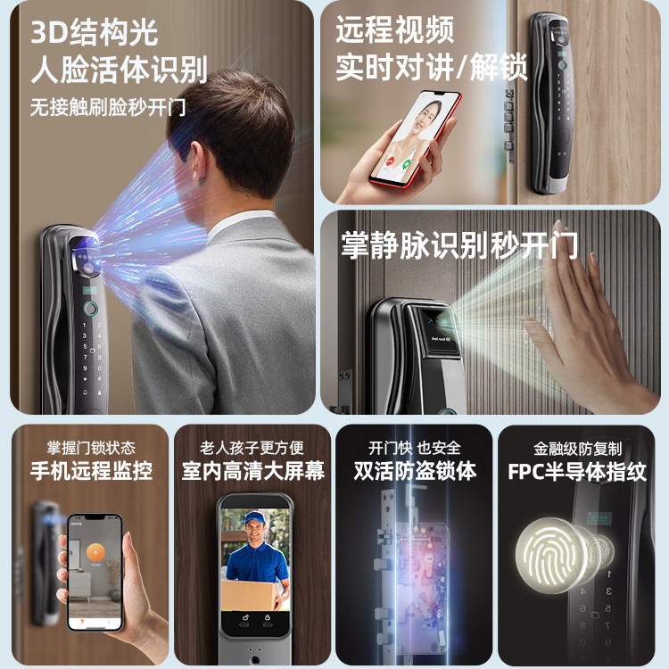 人脸识别掌静脉指纹锁全自动可视智能密码锁家用防盗门智能锁