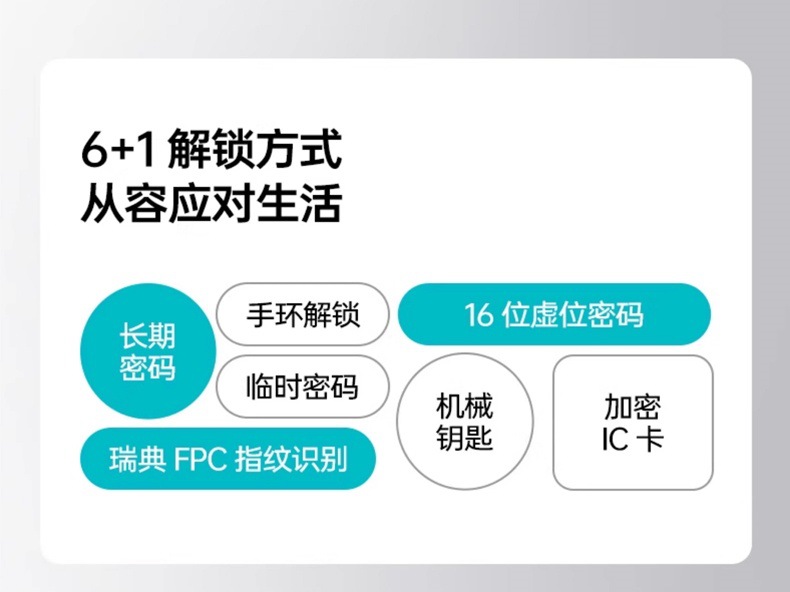 指纹+密码+钥匙+卡片开门方式