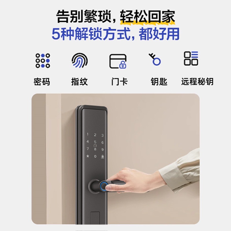 指纹秒开智能门锁入户门家用防盗门房东公寓密码锁电子锁半自动