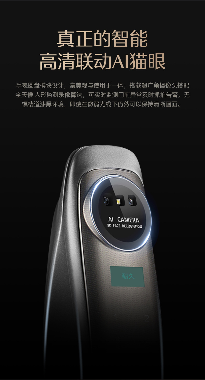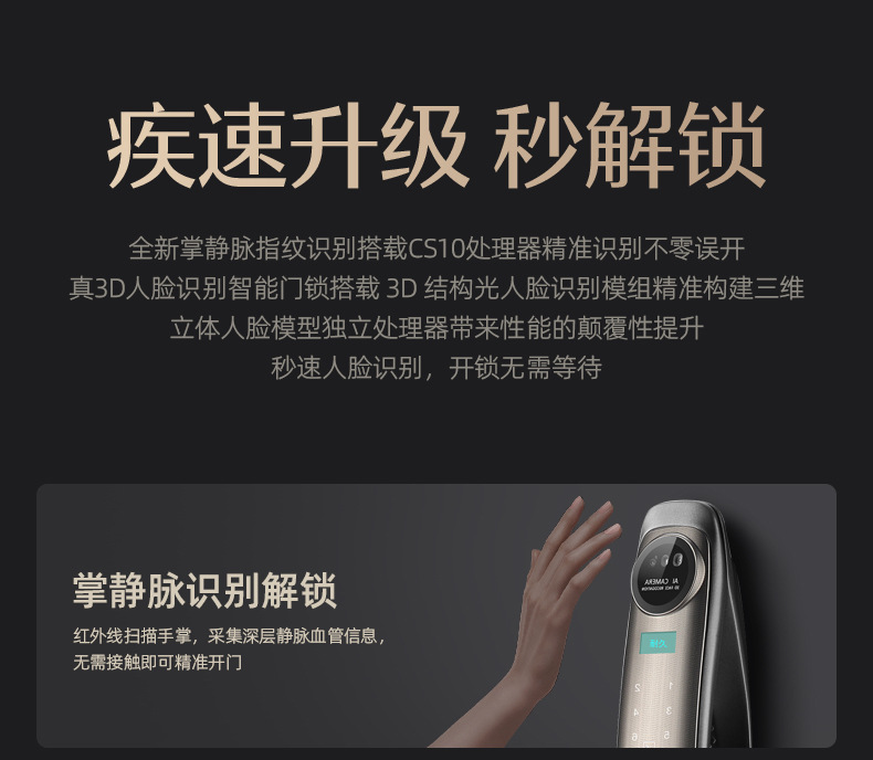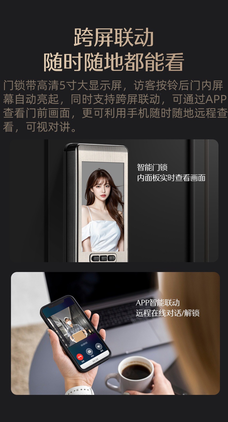 【实时监控+3D人脸+掌静脉5寸高清猫眼+手机智控+监控抓拍】