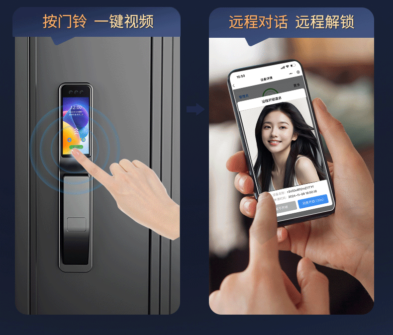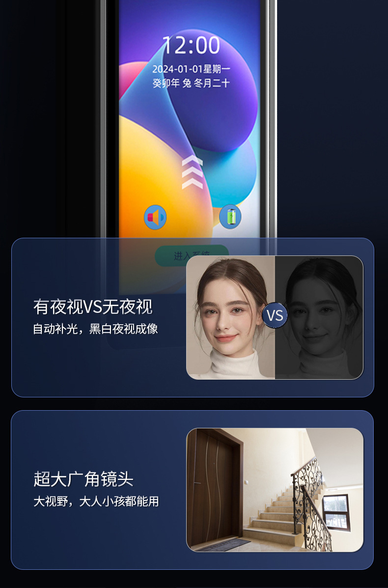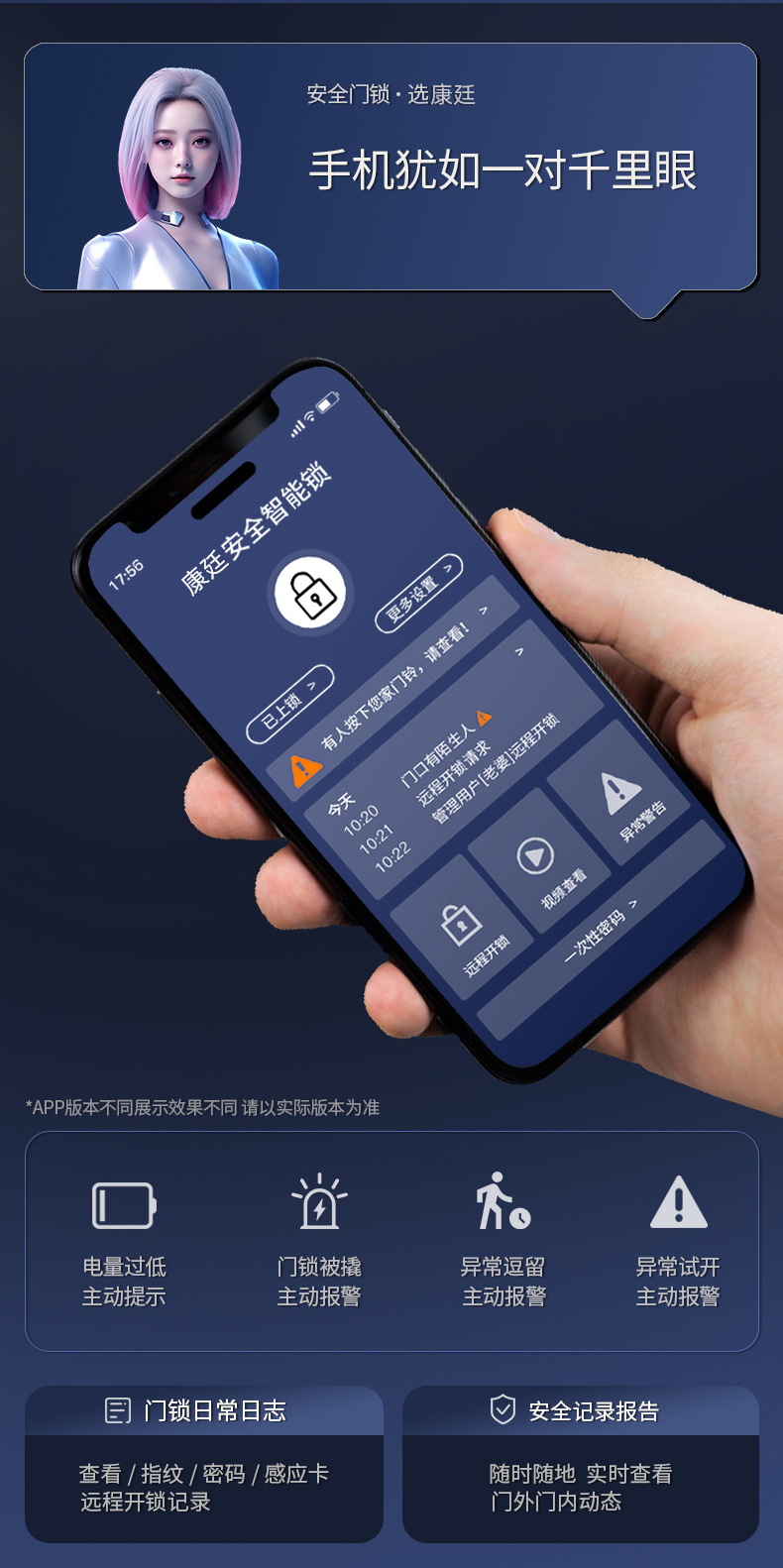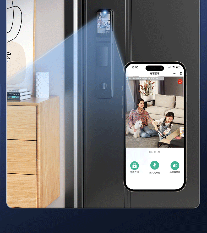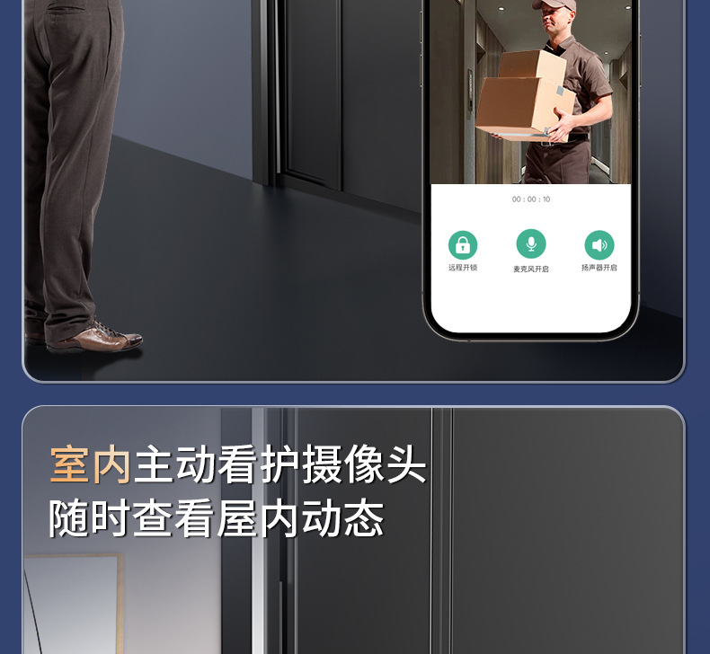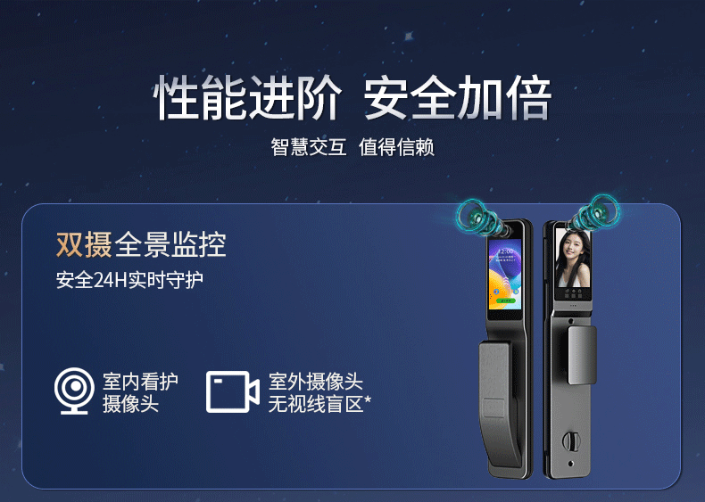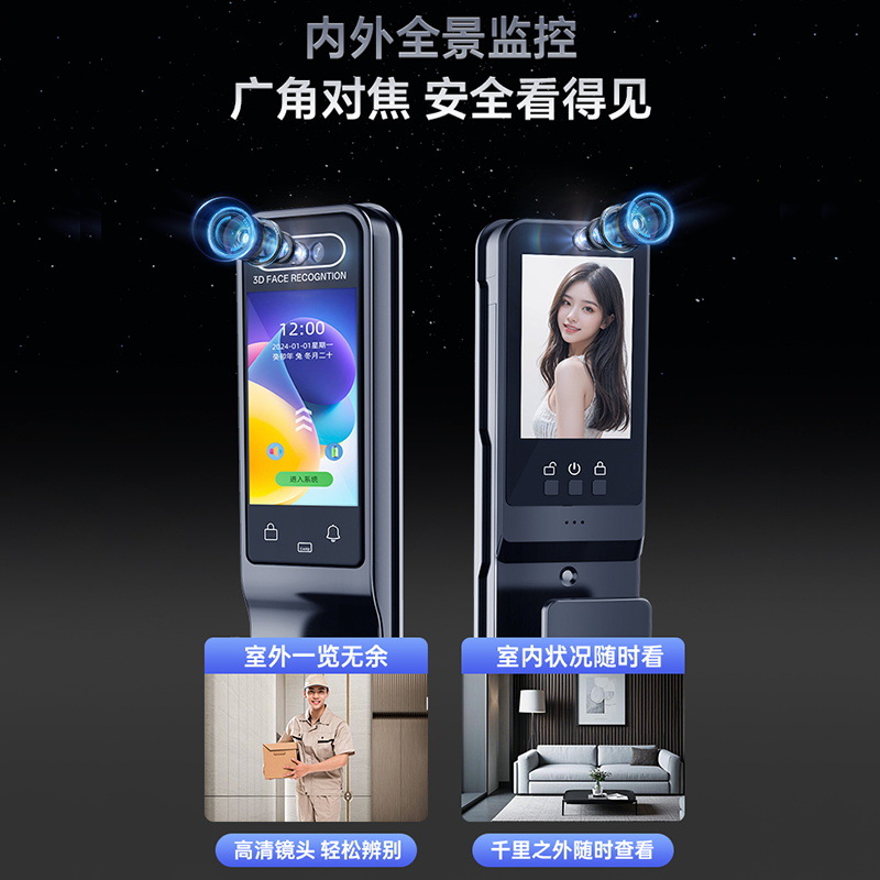 - 双摄监控版-包安装-静音降噪(12大开锁方式+远程视频对讲/解锁)