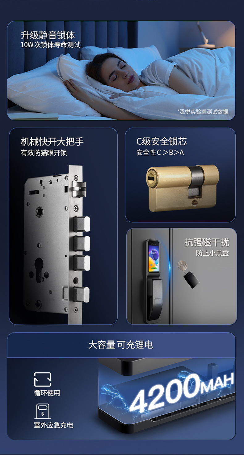 - 大霸王锁体-3D人脸-包安装-静音降噪(3D人脸+远程开锁+可视猫眼+指纹)