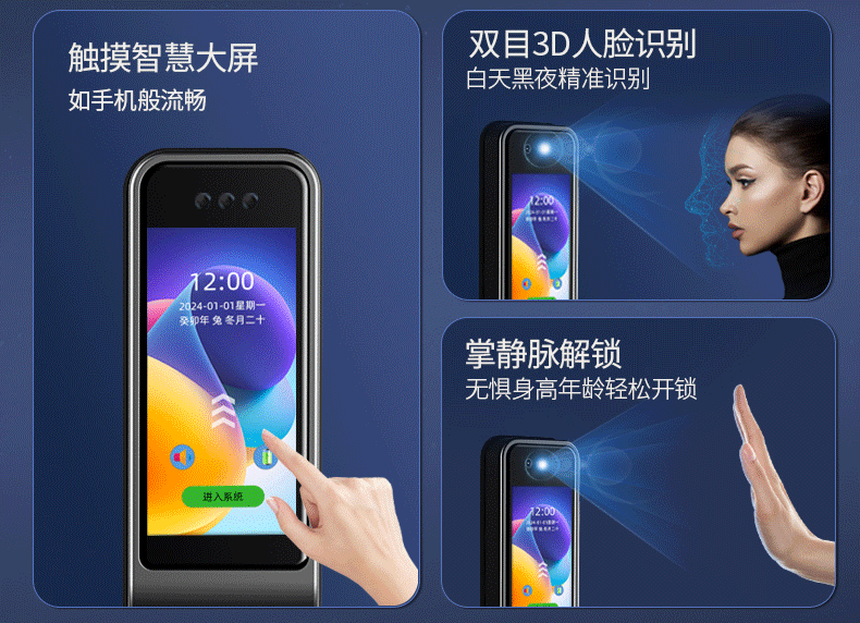 - 3D人脸-包安装-静音降噪(3D人脸+远程开锁+可视猫眼+指纹)