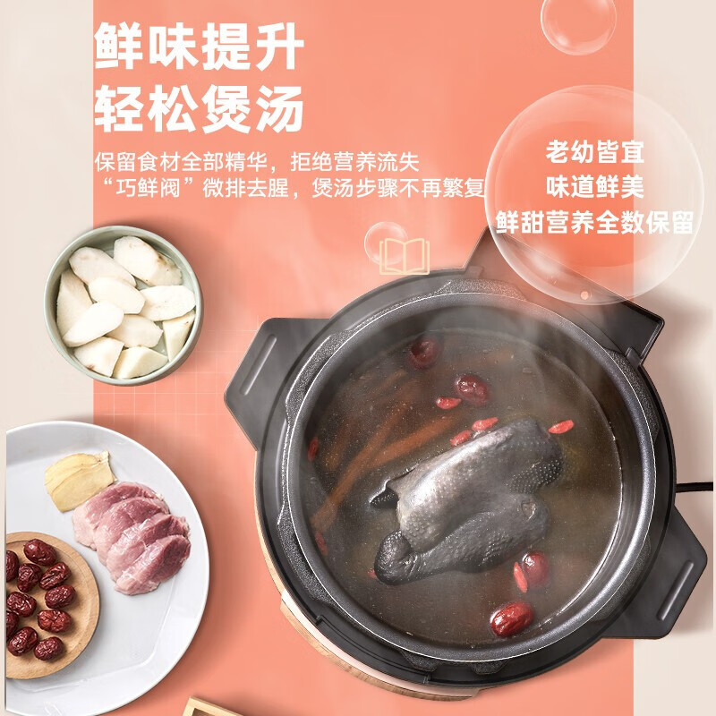 电压力锅家用5升高压锅双胆多功能智能预约蒸饭煮饭煲汤提鲜