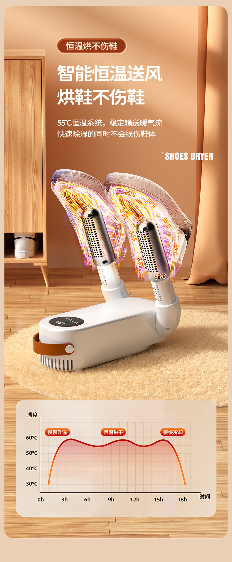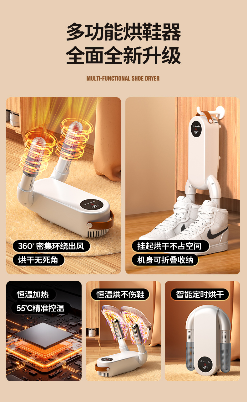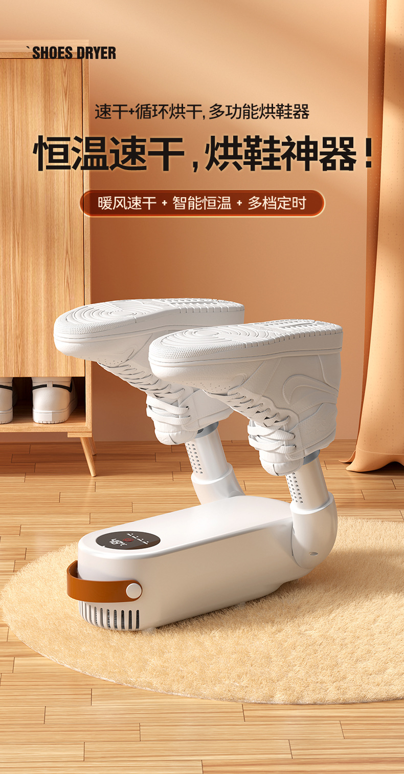 烘鞋器四档智能定时干鞋器便携可叠两用暖风烘干器家用恒温烘鞋机