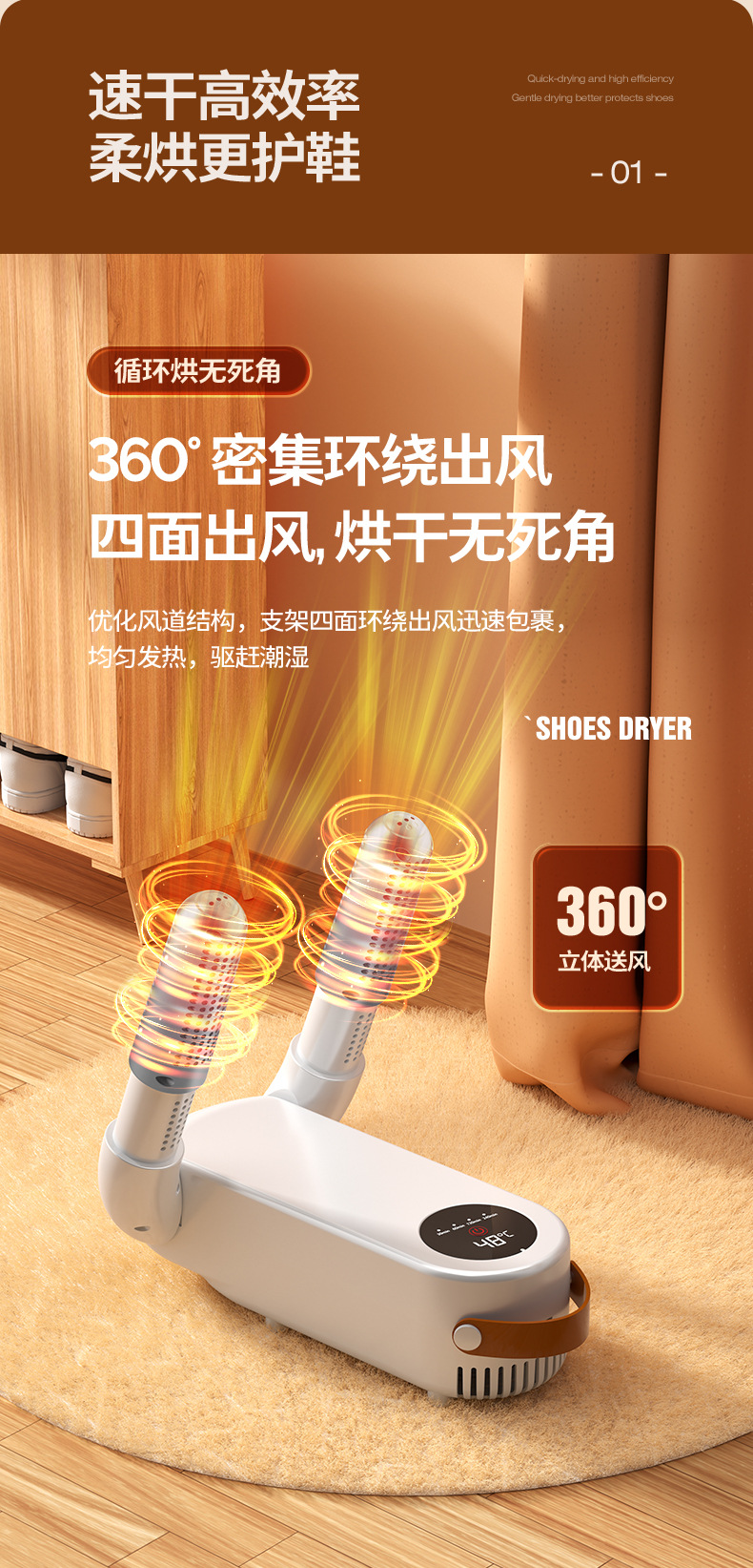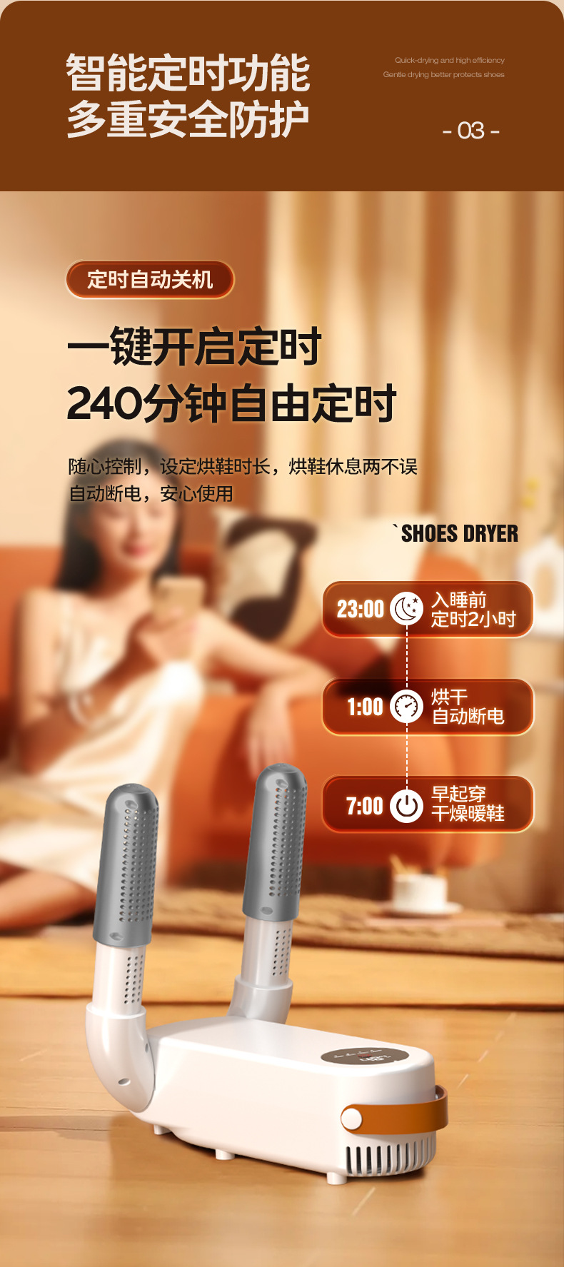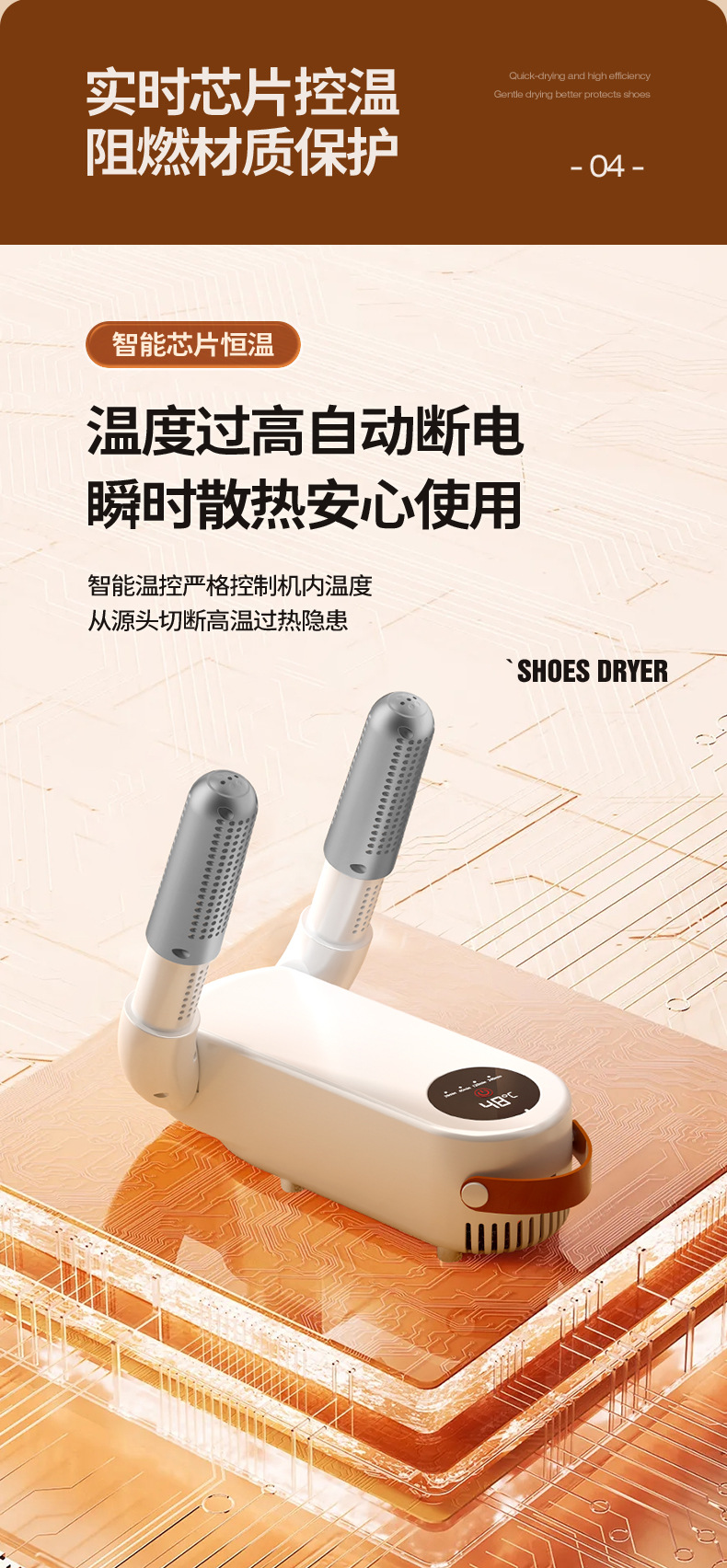 烘鞋器四档智能定时干鞋器便携可叠两用暖风烘干器家用恒温烘鞋机