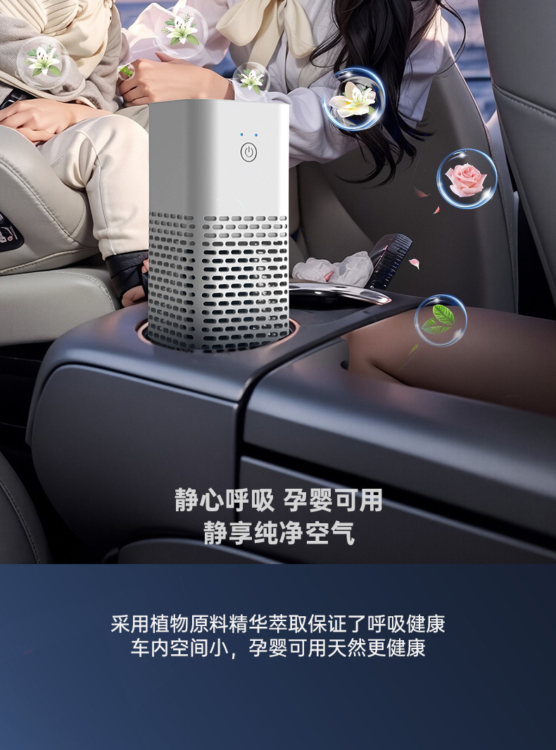 智能负离子车载香薰净化器办公室桌面便携式汽车空气净化器
