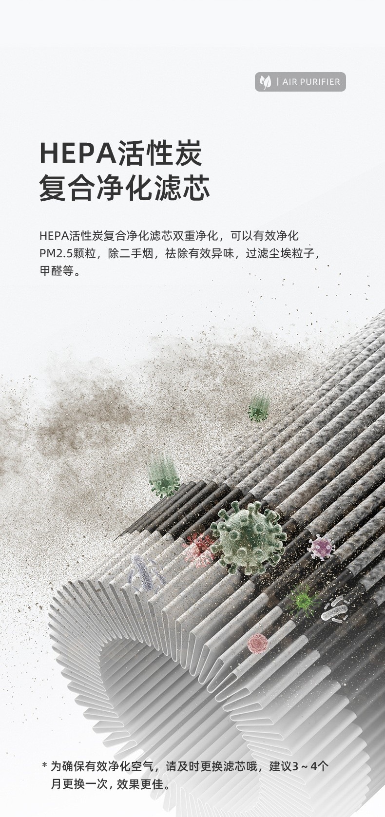 新款空气净化器家用室内除甲醛异味滤芯智能负离子