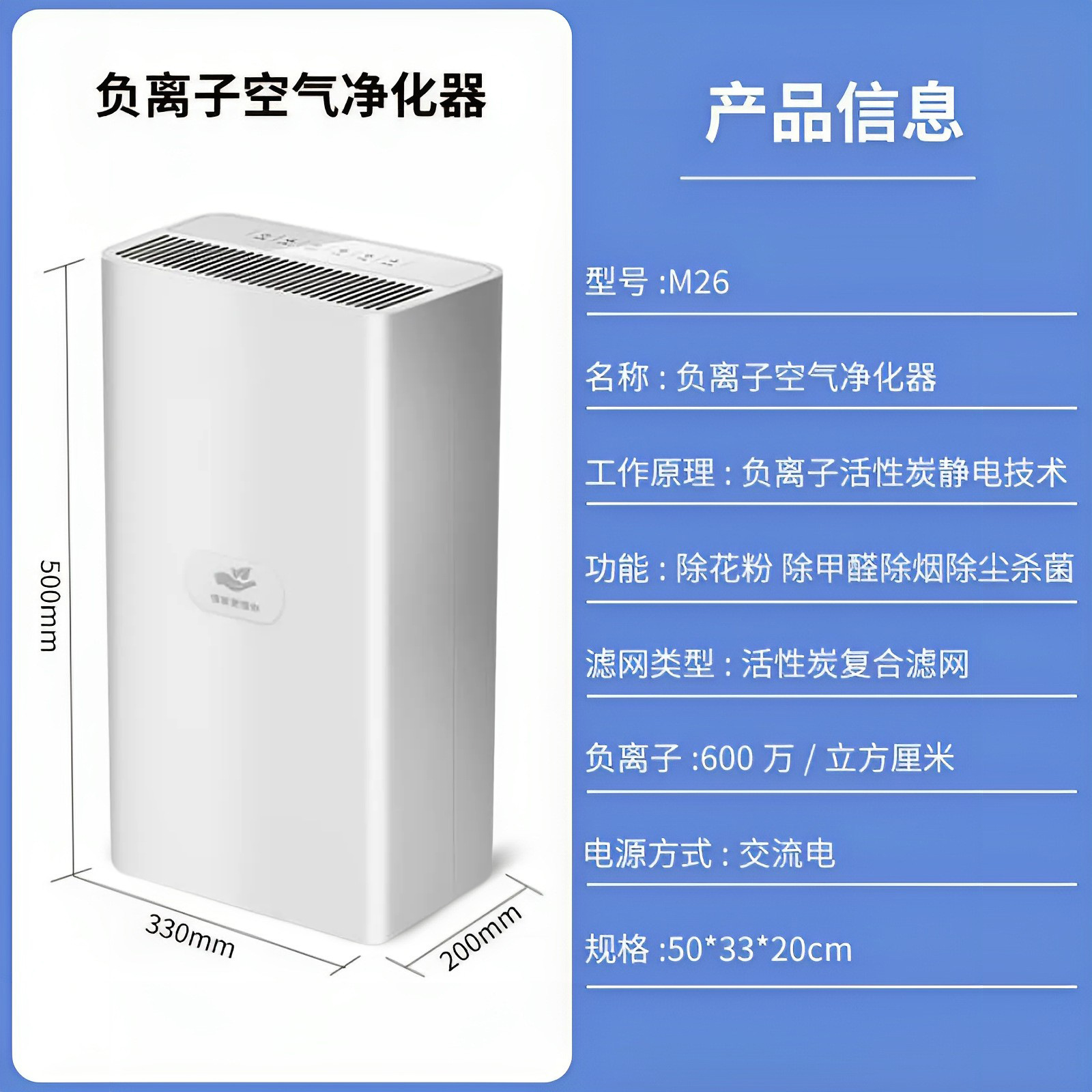 负离子空气净化器家用办公室活性炭除甲醛室内去除烟味过滤器全屋