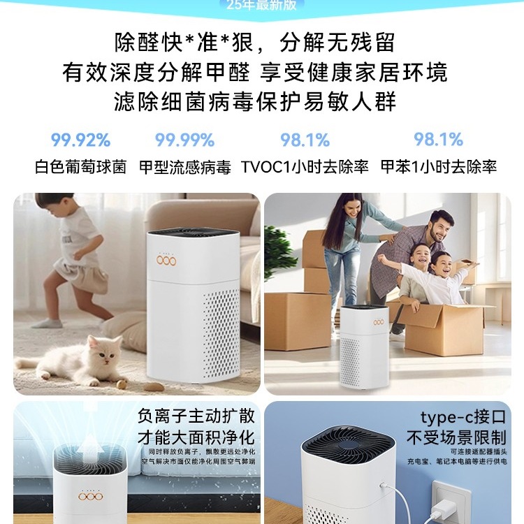 新款空气净化器家用室内除甲醛异味滤芯智能负离子