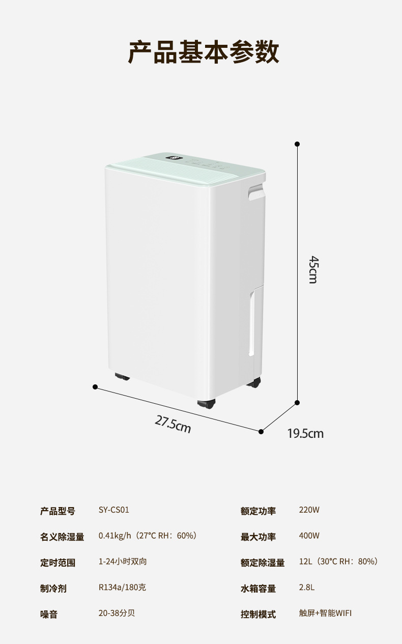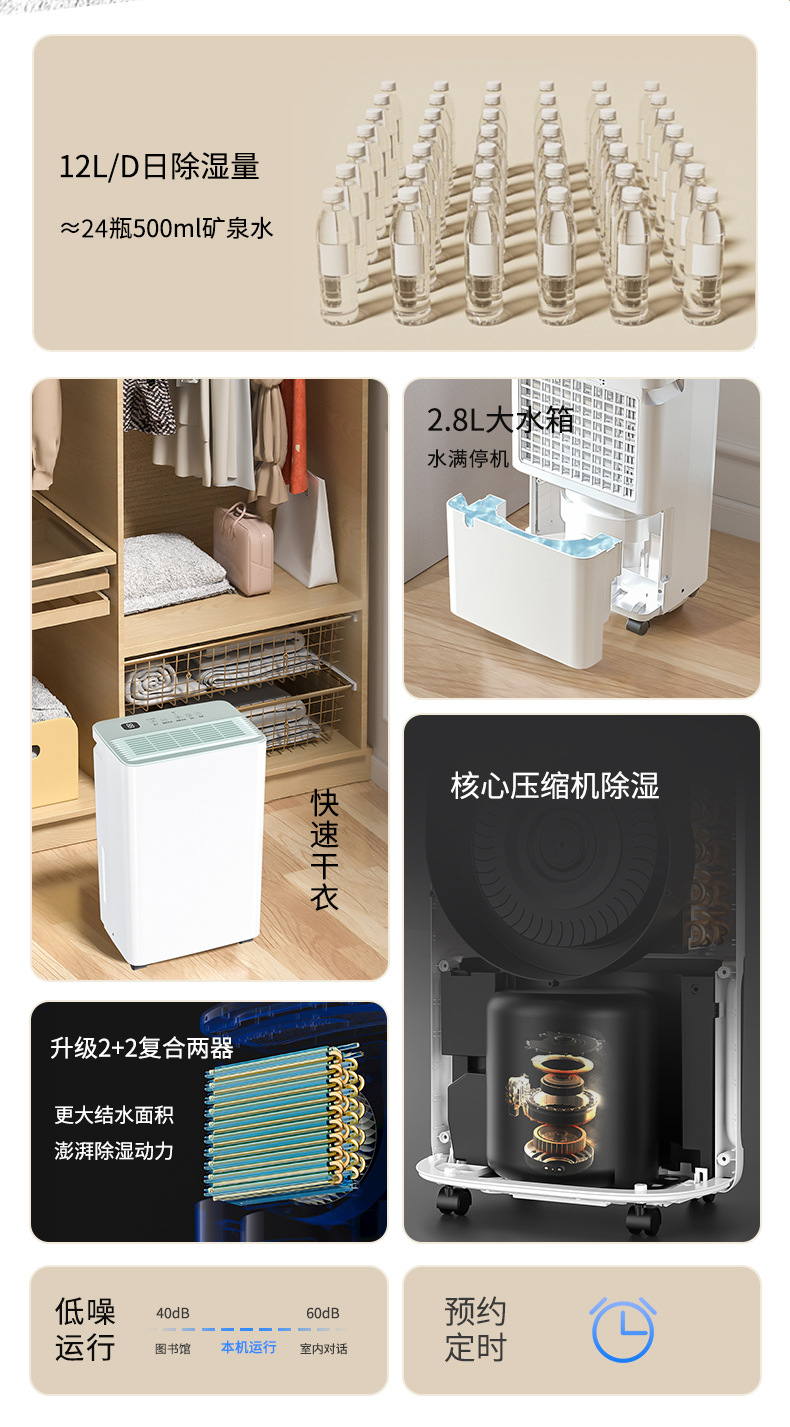 除湿机家用抽湿机静音室内压缩机地下室除潮除湿吸湿去湿
