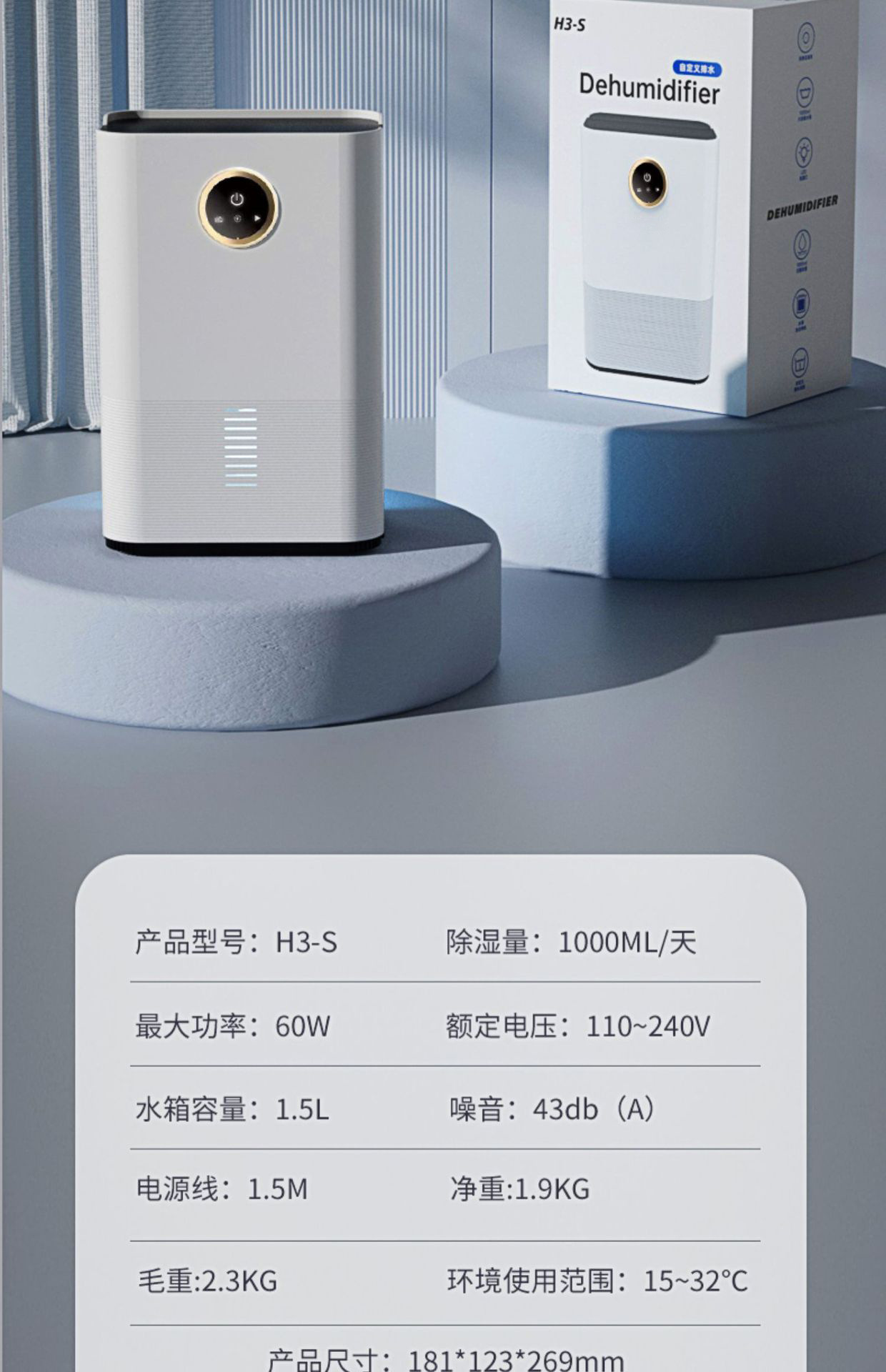 24H/500ml半导体除湿机家用卧室小型抽湿机除潮吸湿机干燥除湿