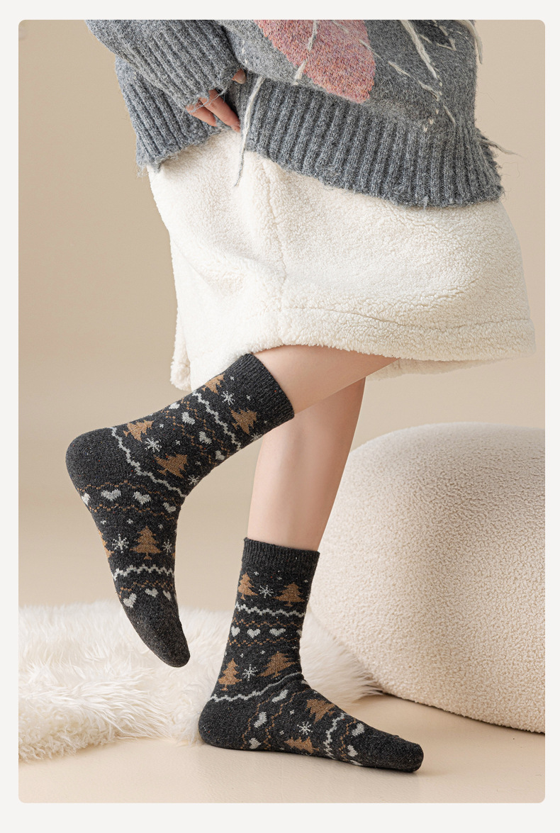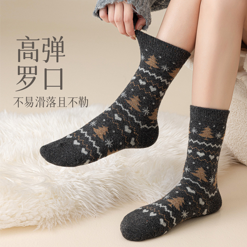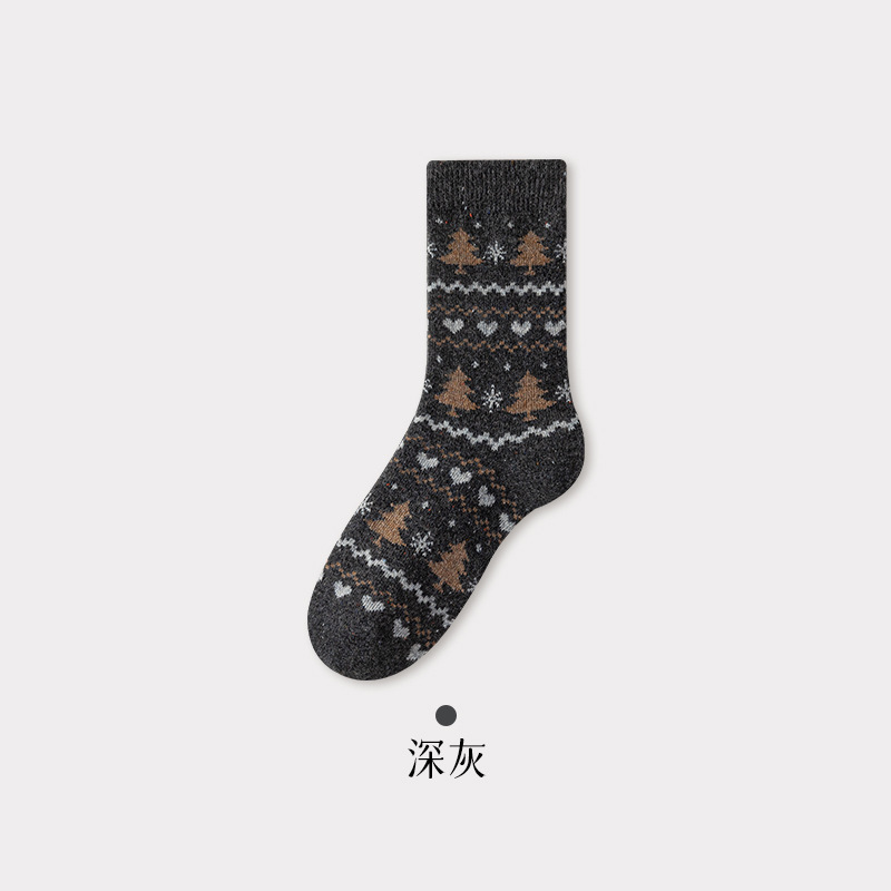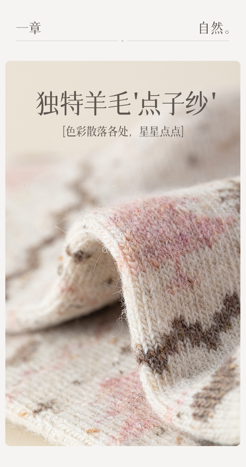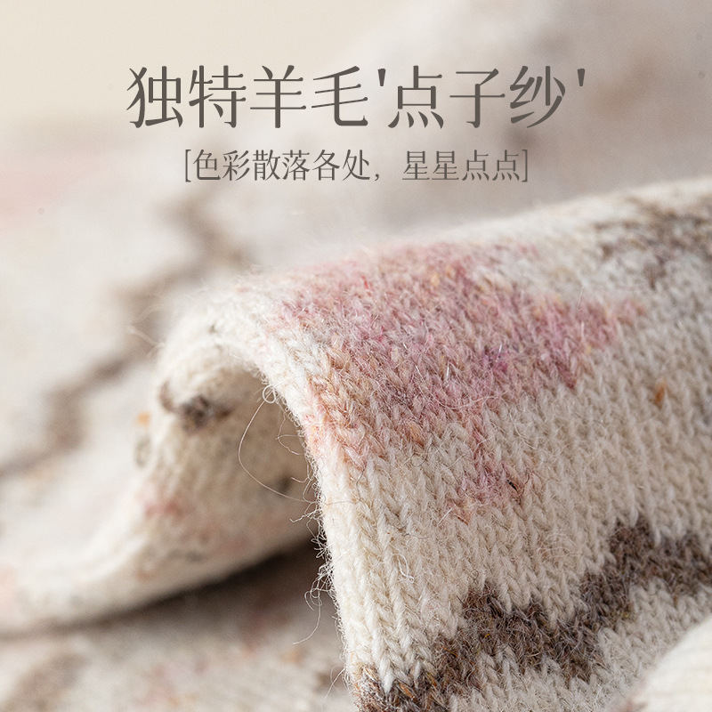 羊毛点子纱圣诞袜子女士中筒袜保暖加厚抗起球复古费尔岛羊绒长袜