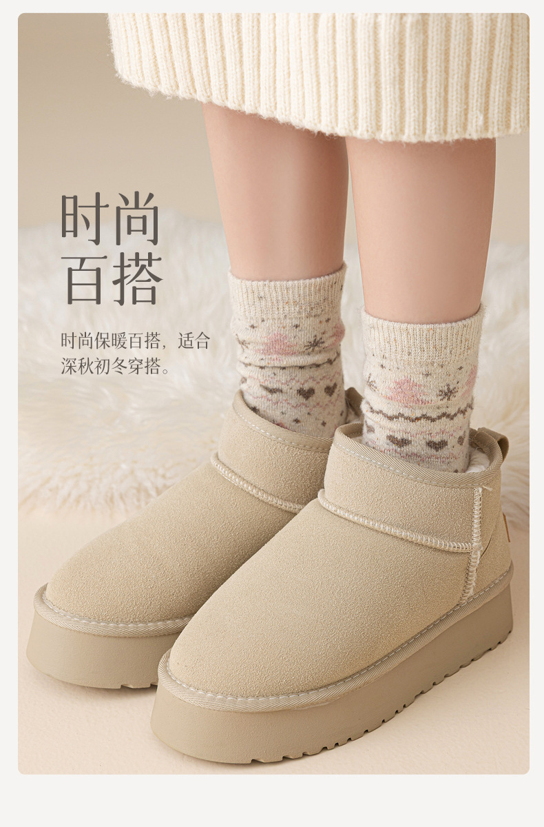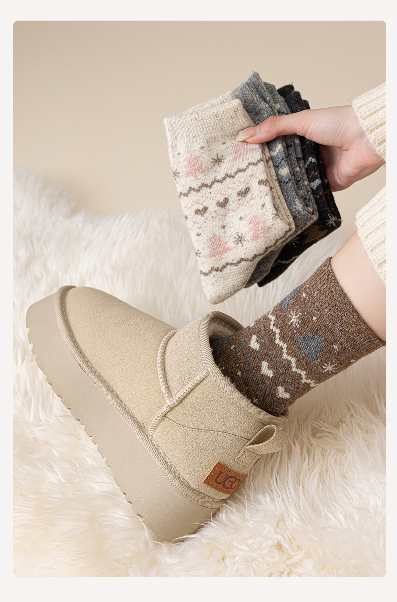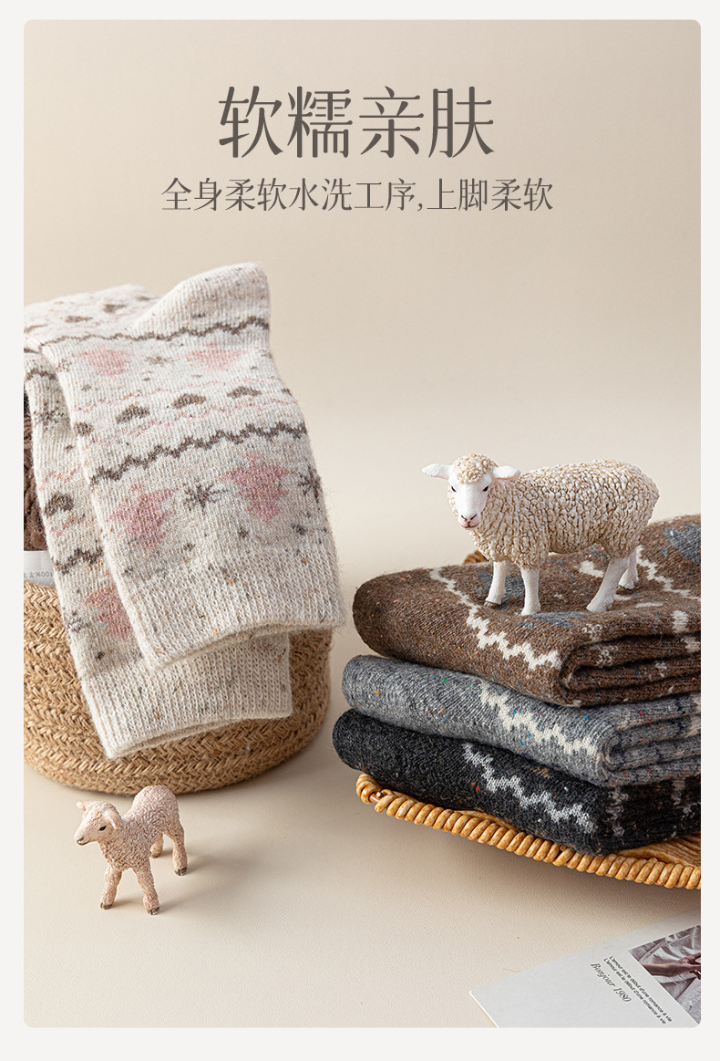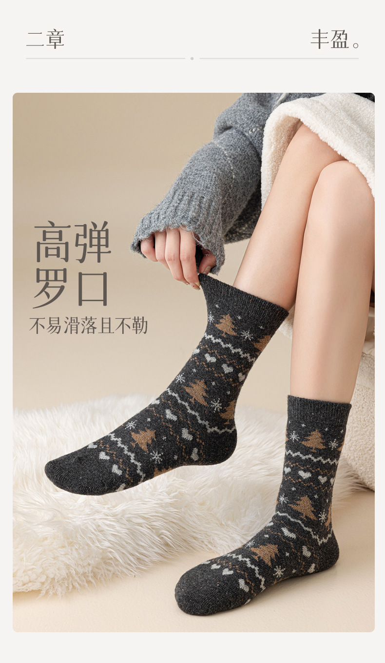 羊毛点子纱圣诞袜子女士中筒袜保暖加厚抗起球复古费尔岛羊绒长袜