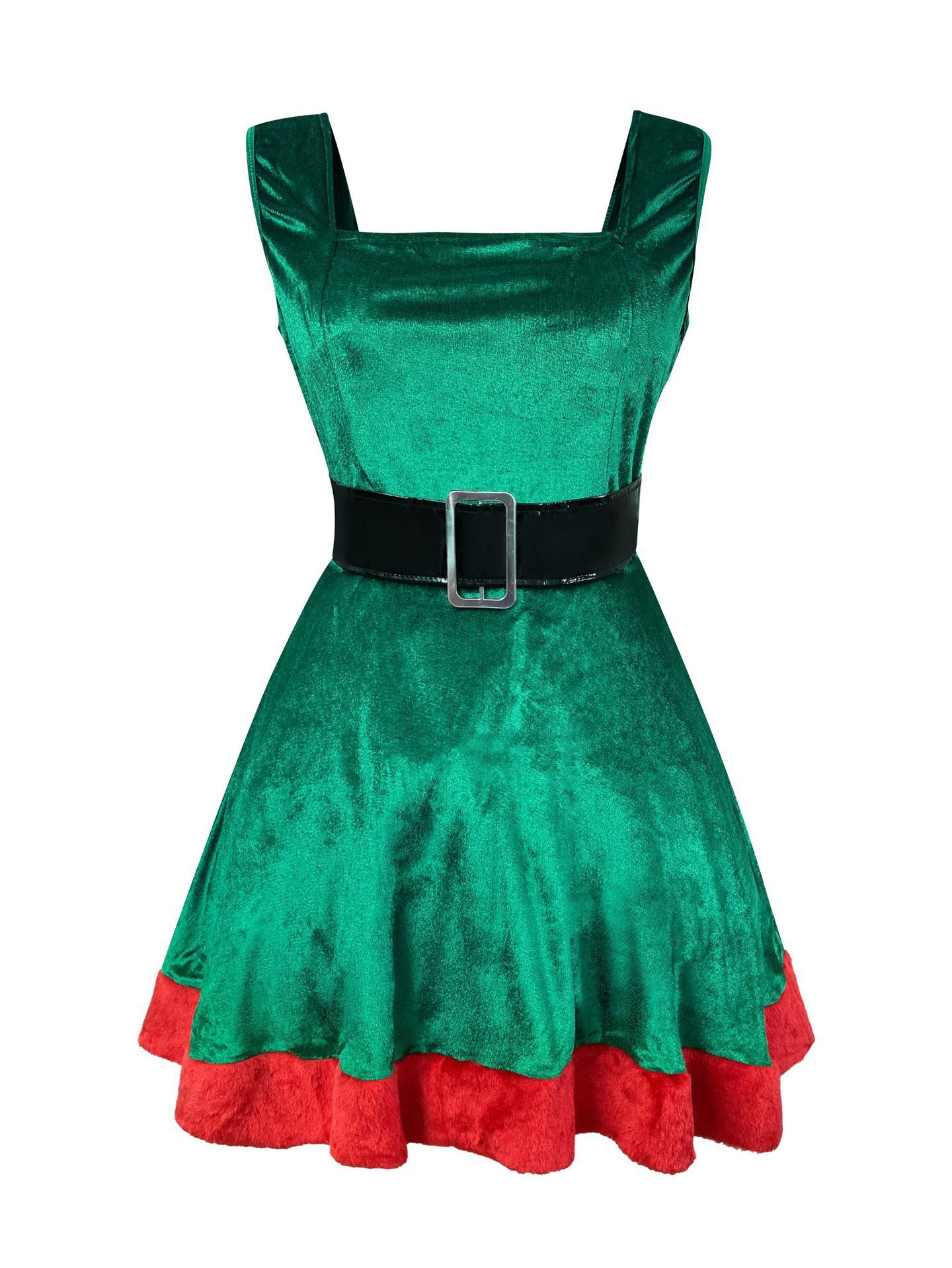 欧美圣诞节服装绿色精灵公主裙圣诞节cosplay舞台演出服女
