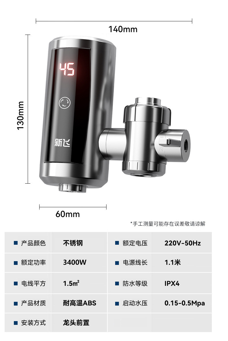 恒温免安装不锈钢【漏保+1.5米延长线+万向头】