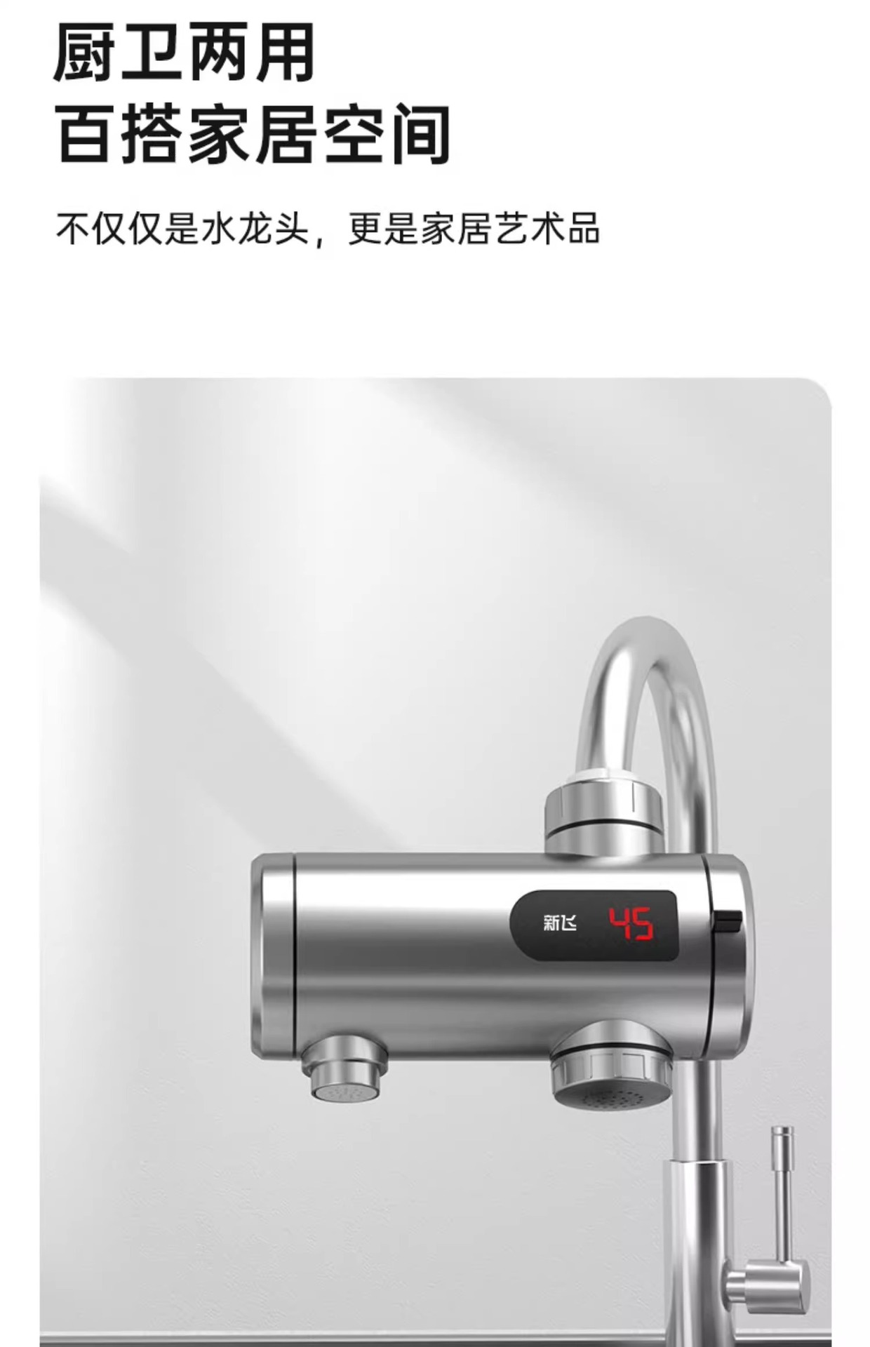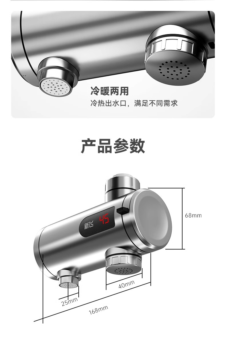新飞不锈钢电热水龙头速热即热式电加热龙头过水热厨宝智能数显