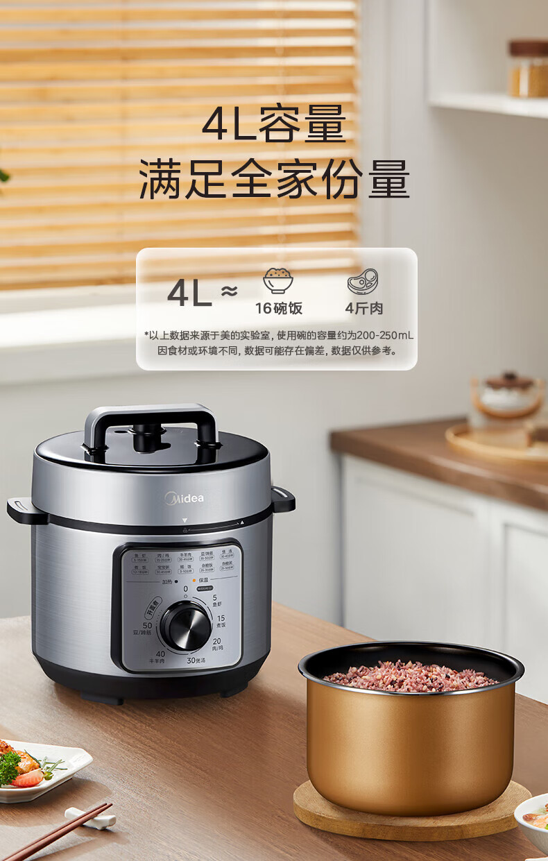 电压力锅家用4升高压锅智能旋钮调节提鲜去腥电饭锅多功能