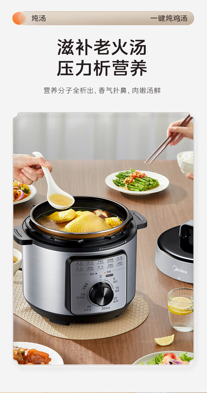 MY-E522电压力锅双胆家用6升智能高压鲜汤深胆大火速热快煮