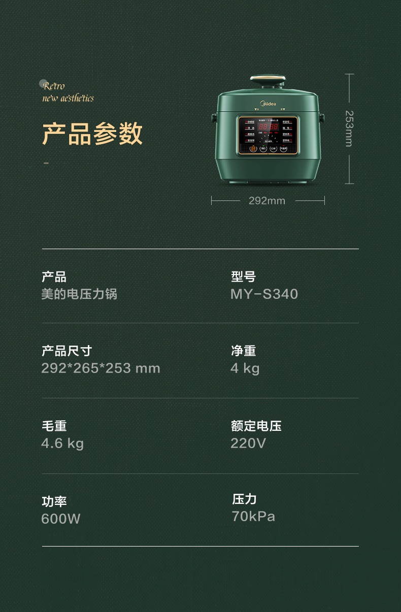 美的电压力锅MY-S340
