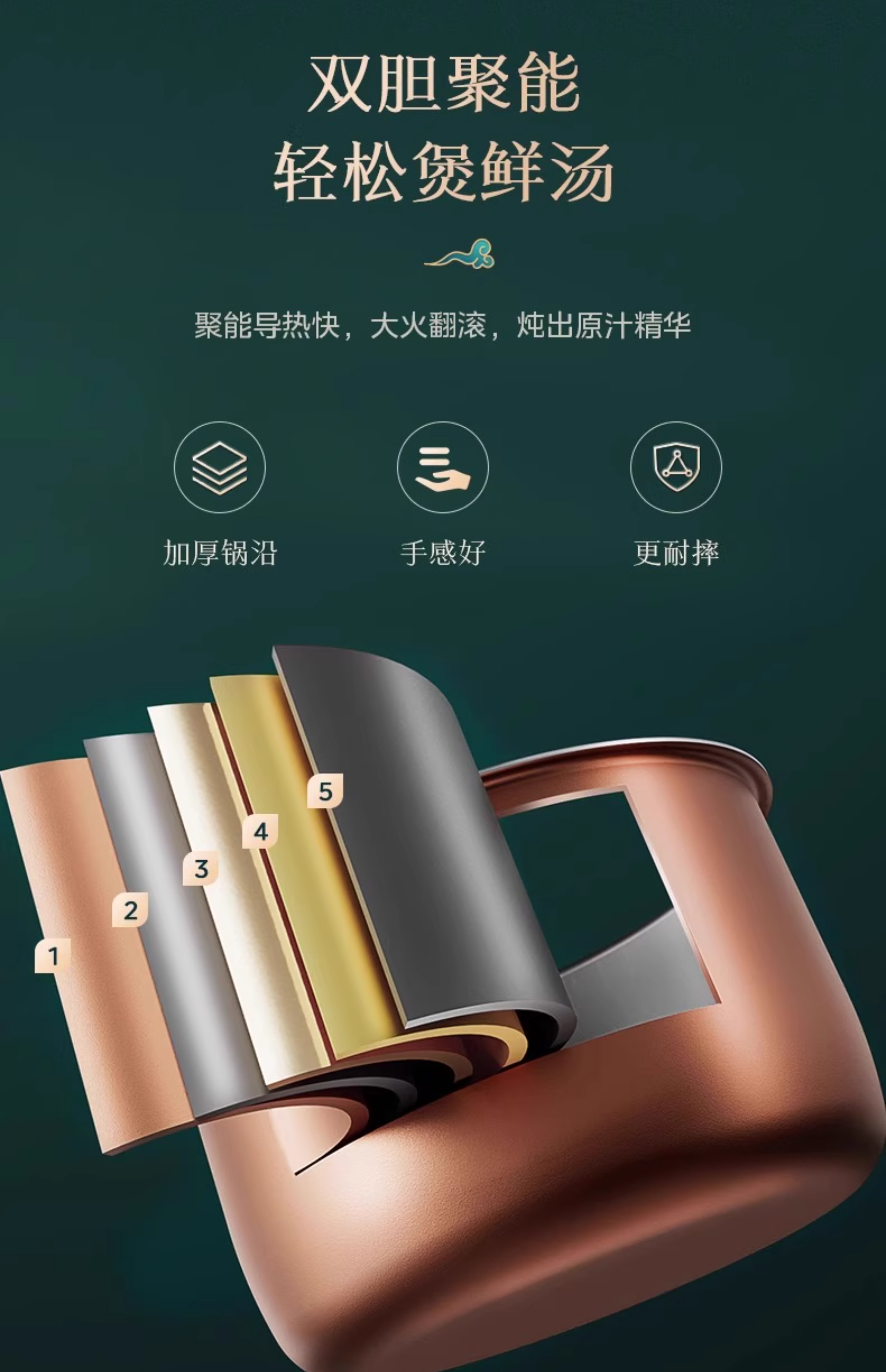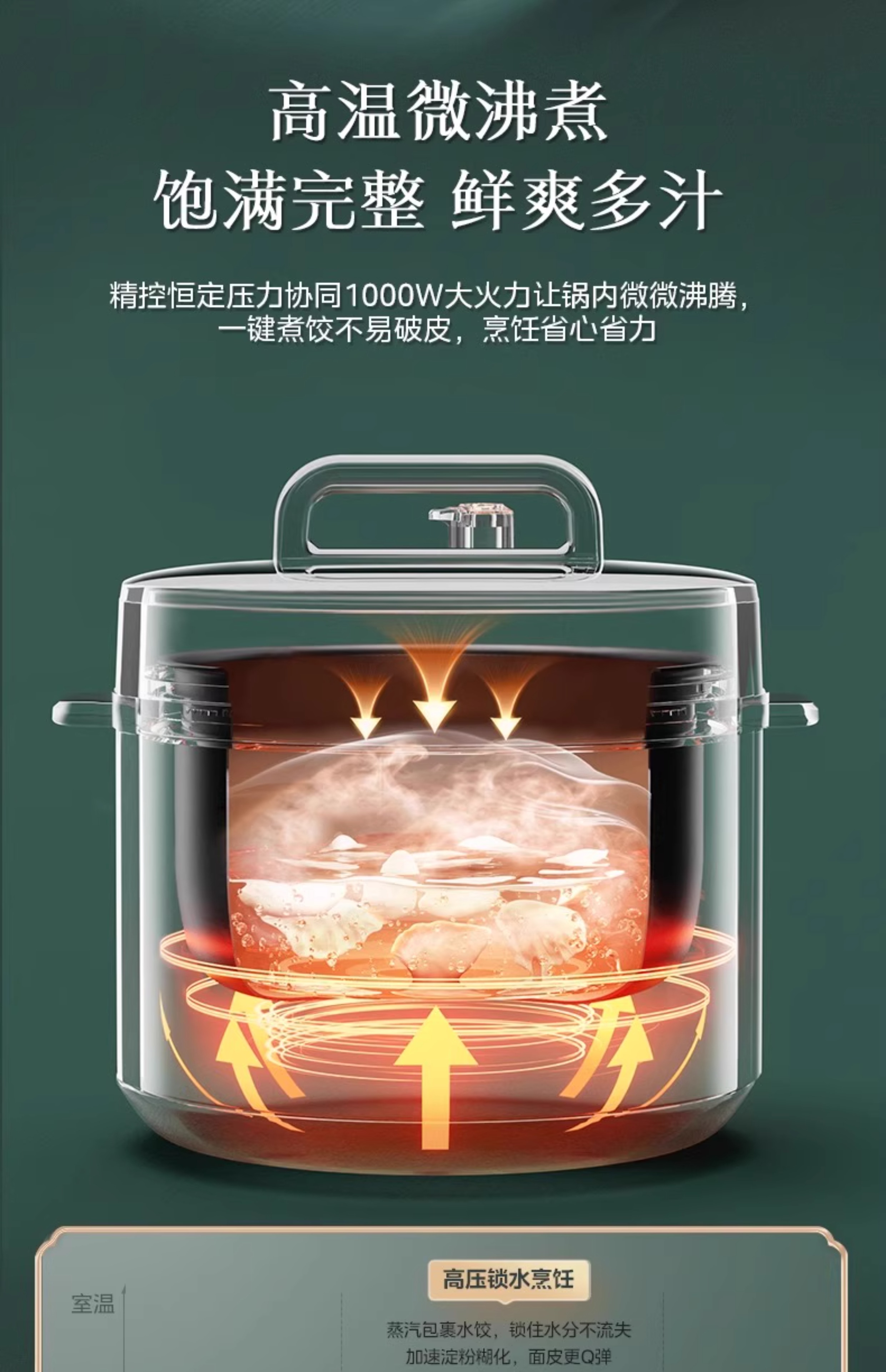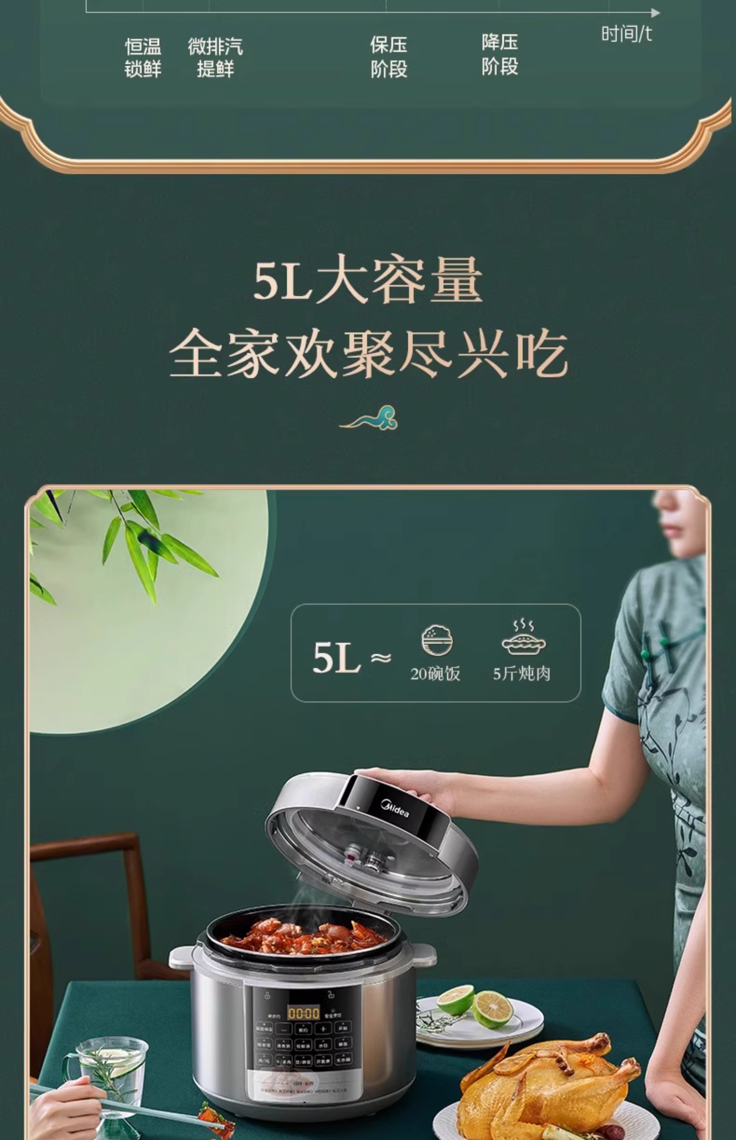 电压力锅家用5升高压锅双胆智能定时预约大容量5层聚能内胆