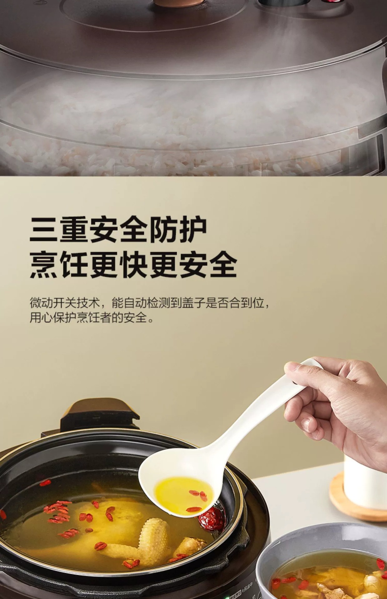 电压力锅家用4.8升高压锅双胆大容量全自动多功能煲汤煮饭锅