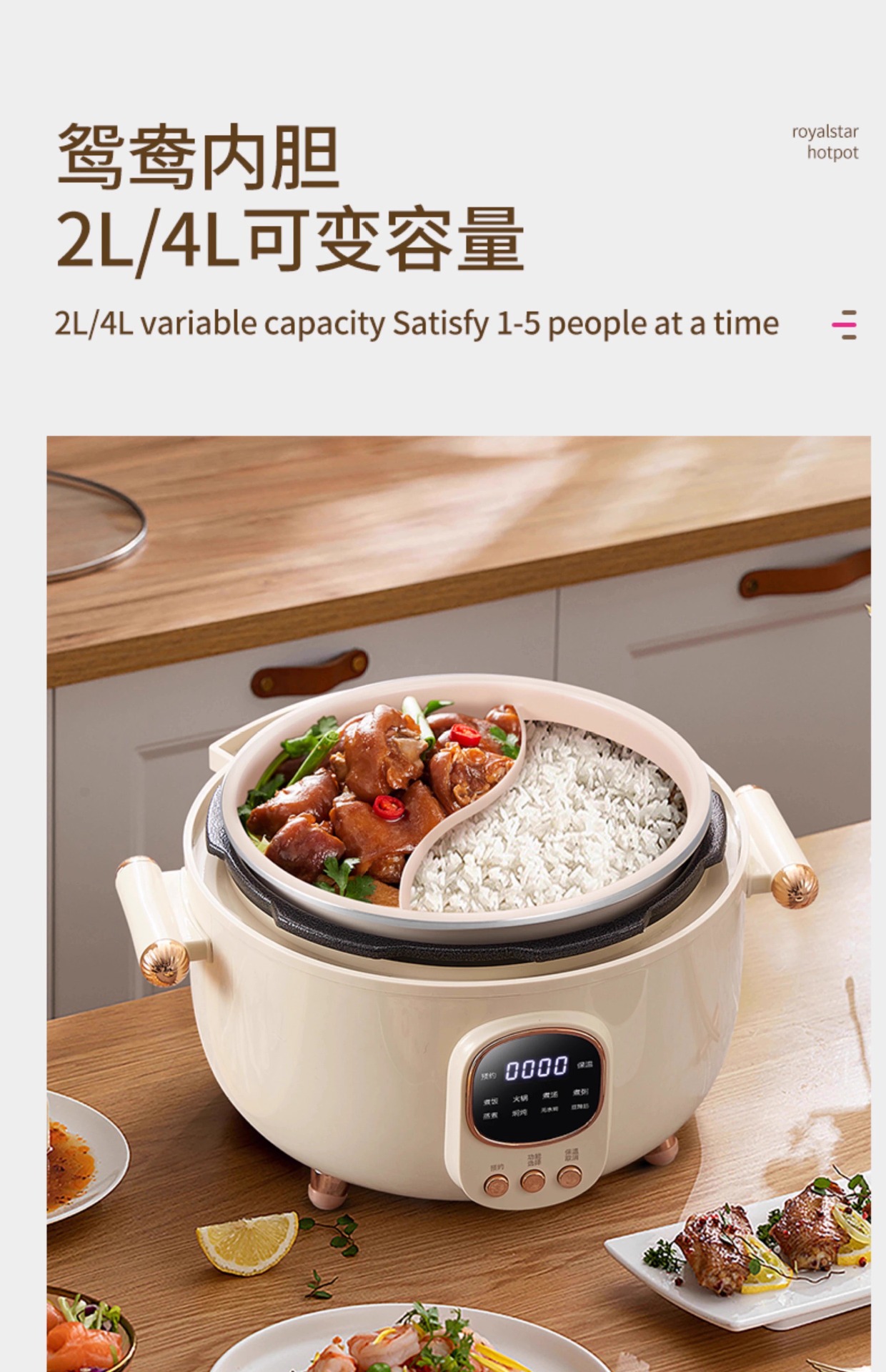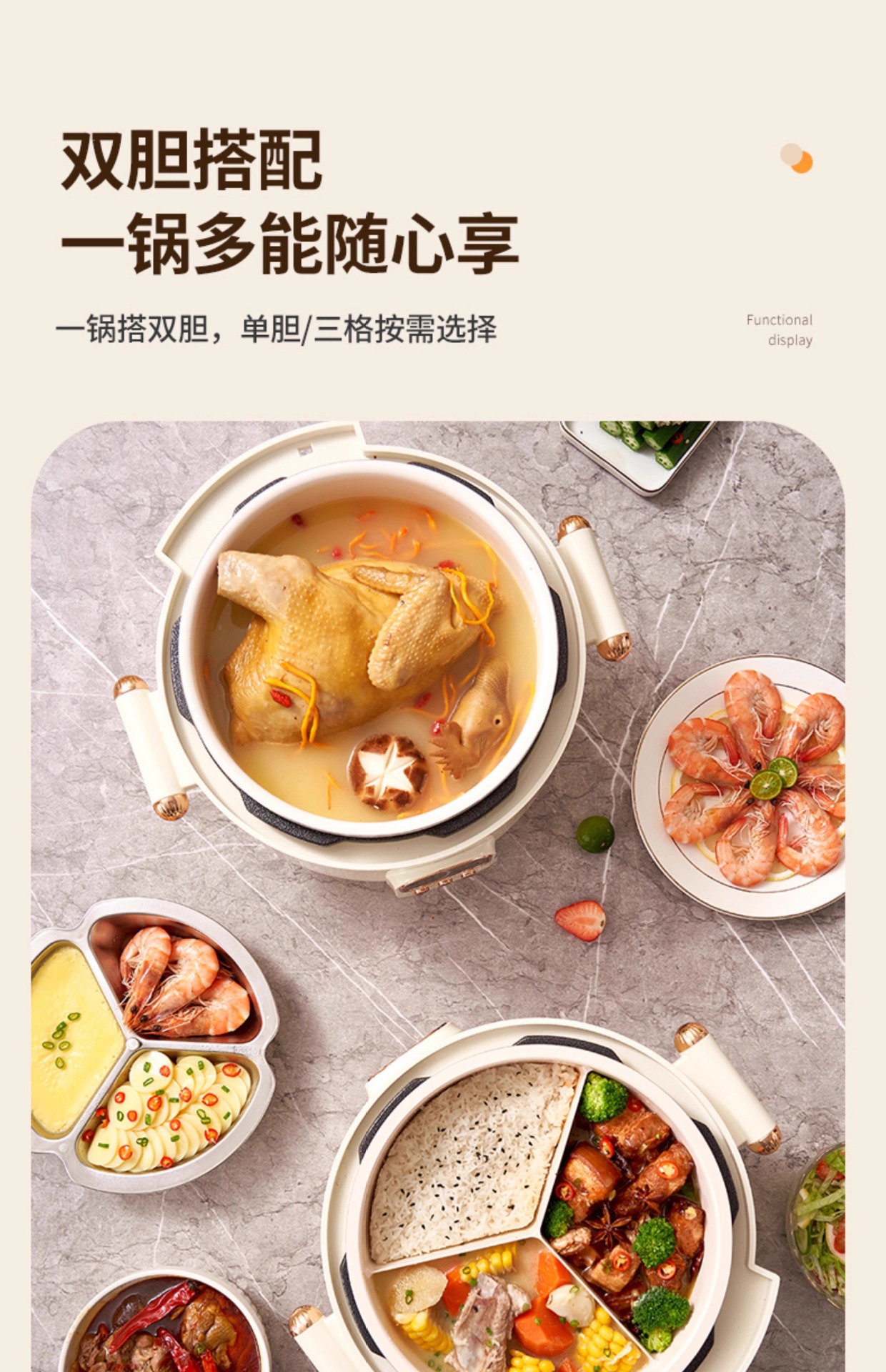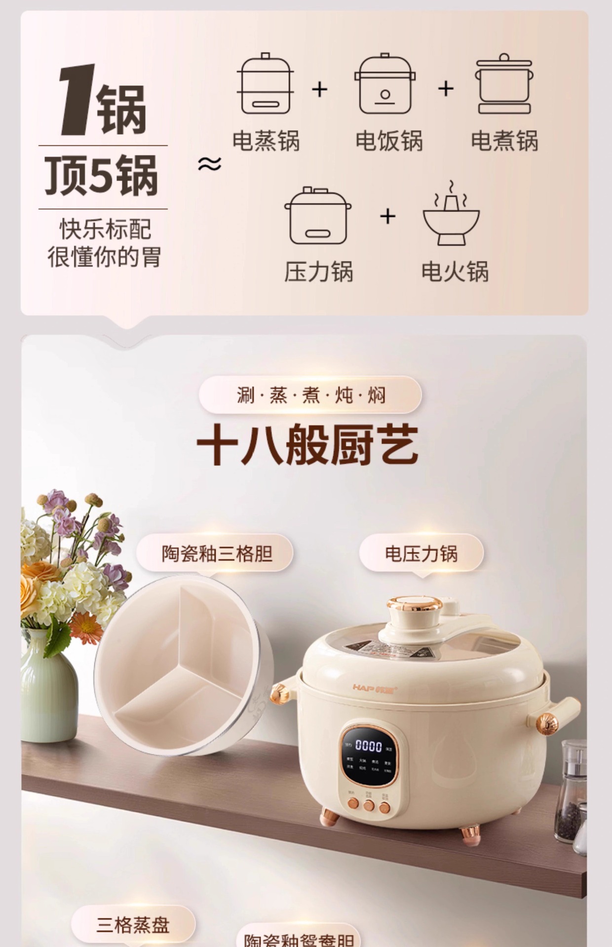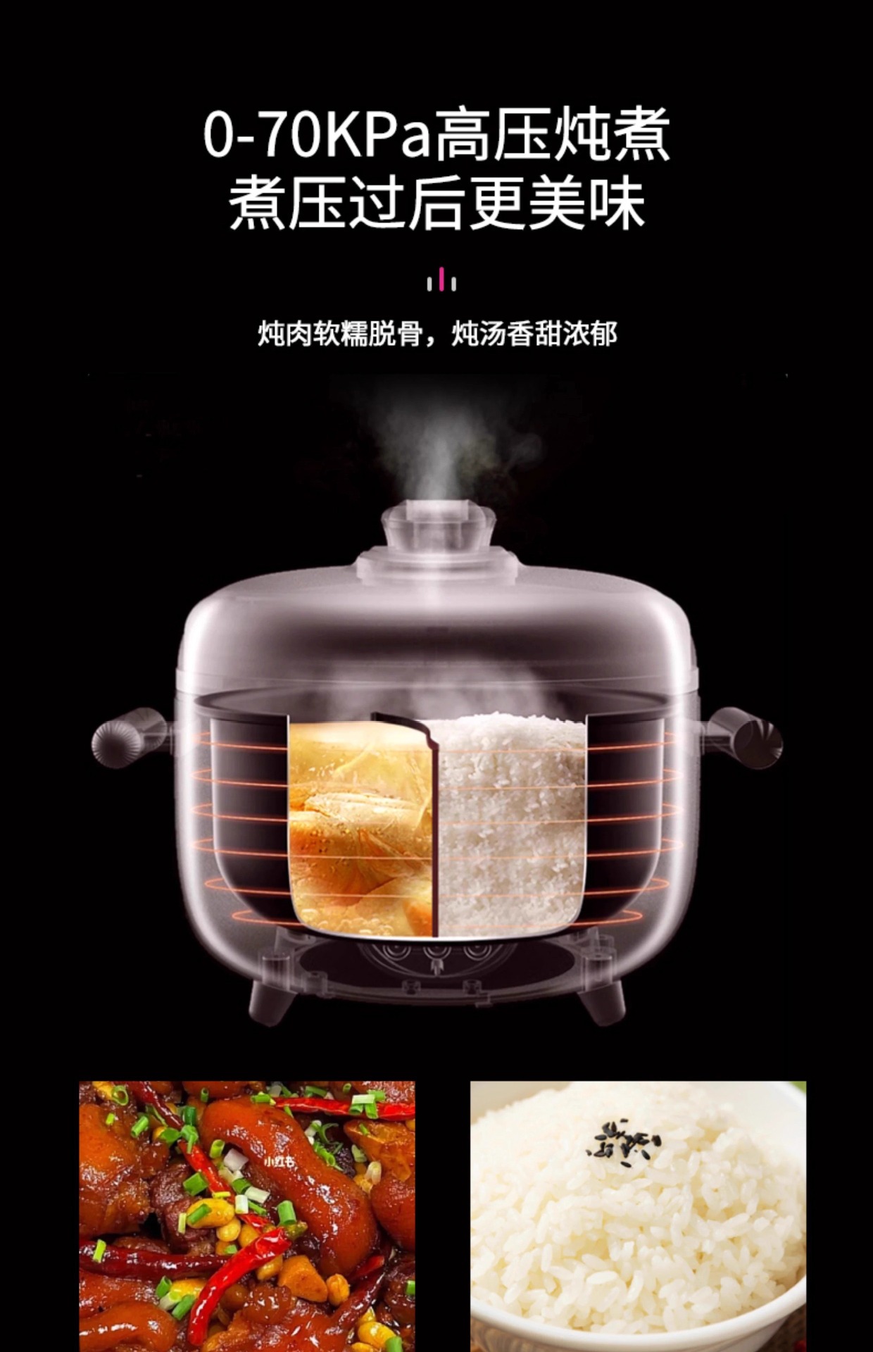 三格内胆电压力锅家用4L高压锅煮饭陶瓷釉鸳鸯胆双胆