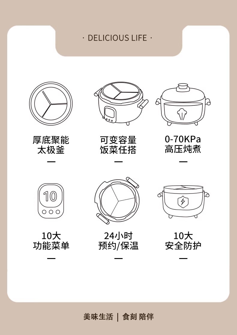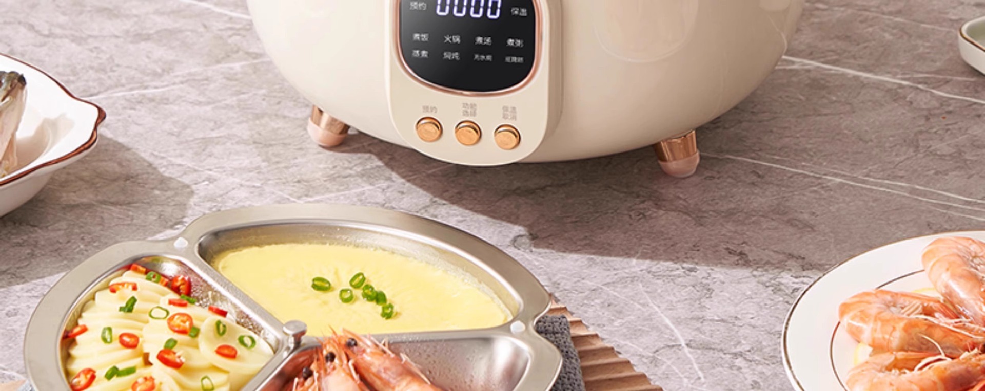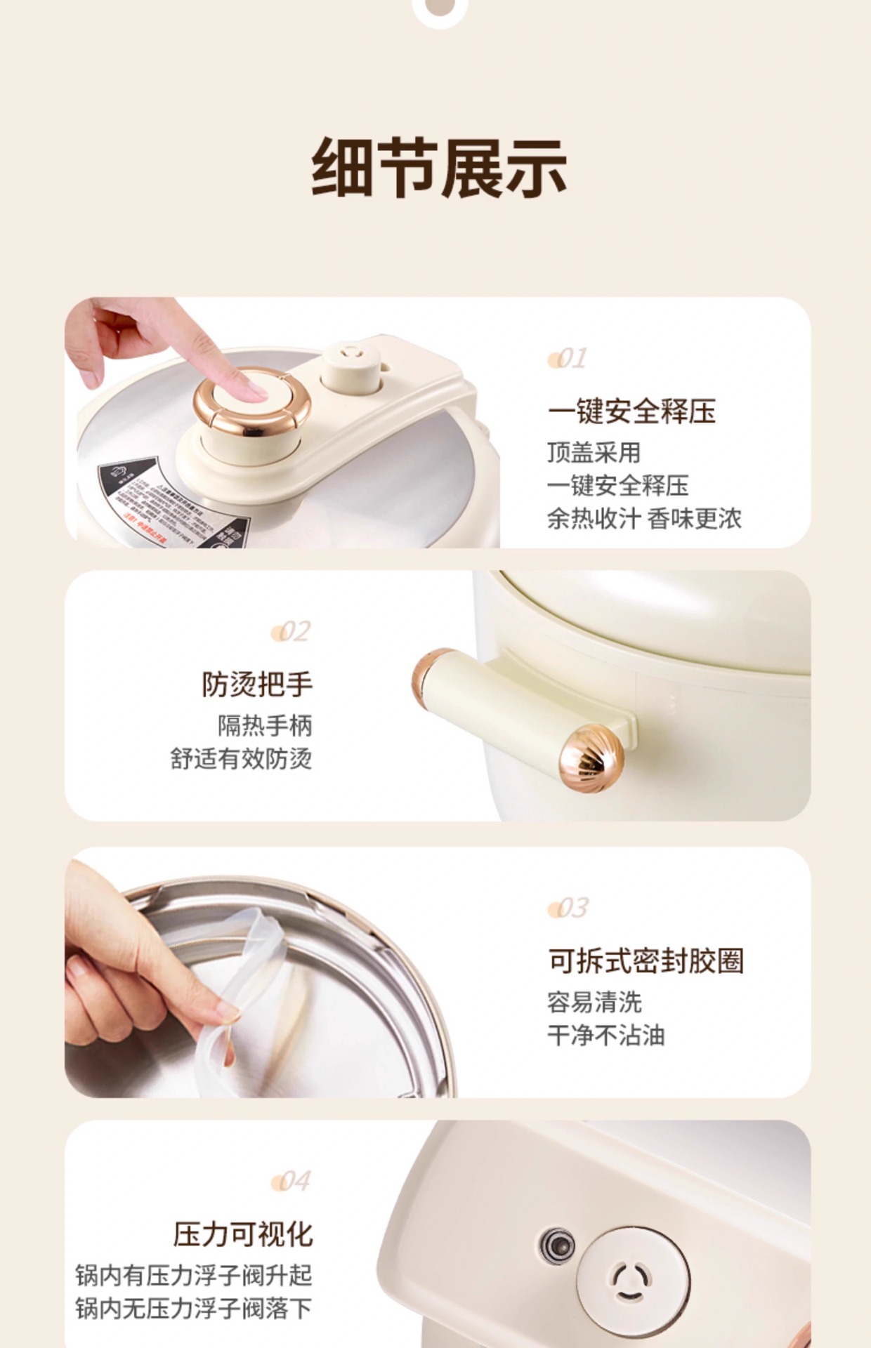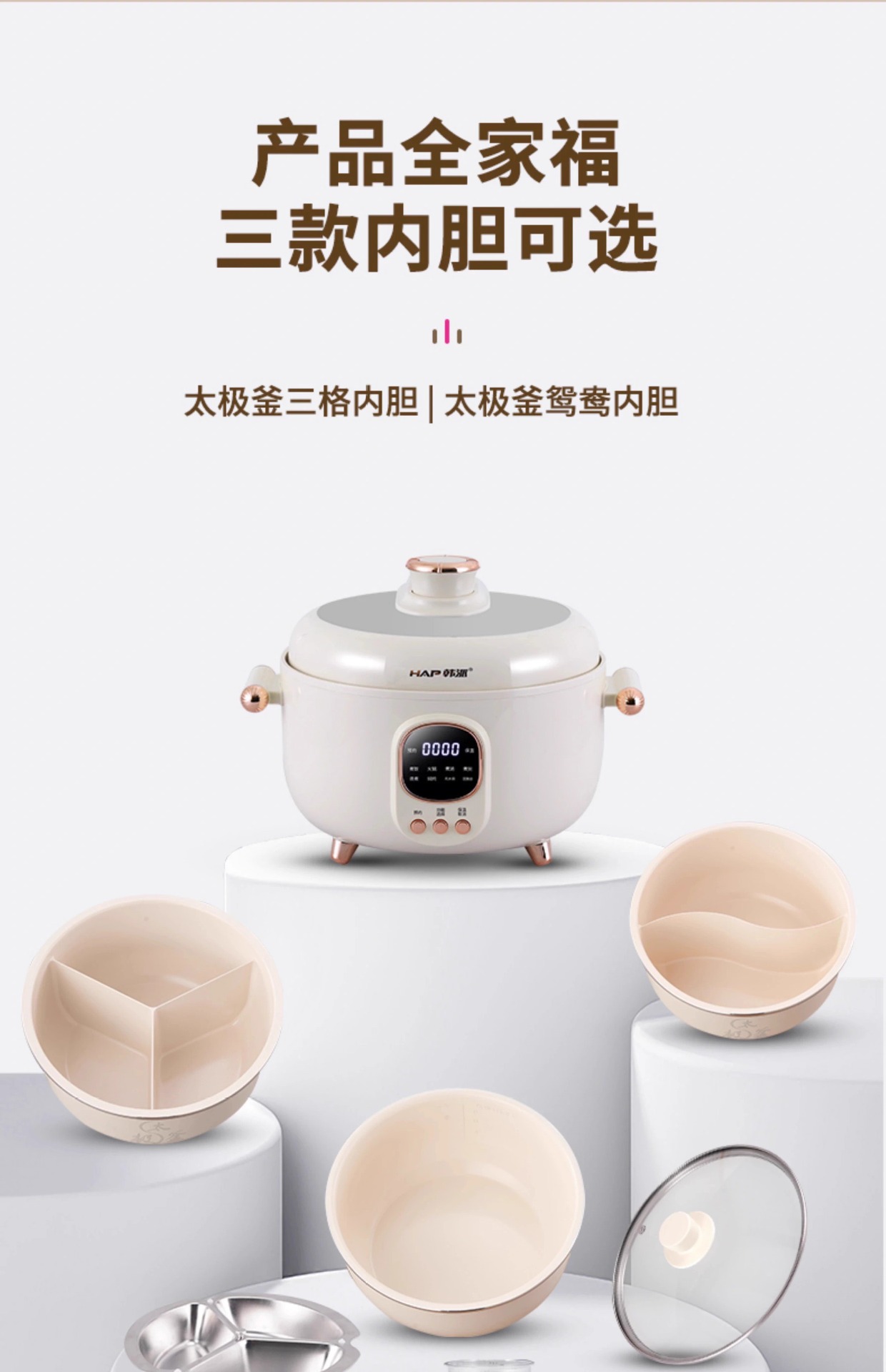 三格内胆电压力锅家用4L高压锅煮饭陶瓷釉鸳鸯胆双胆