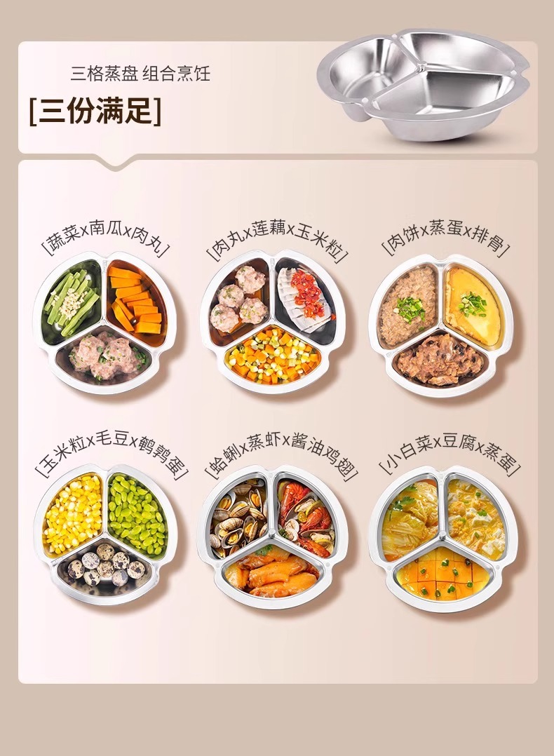 40H9-S全家福+三格蒸盘(陶瓷釉内胆)