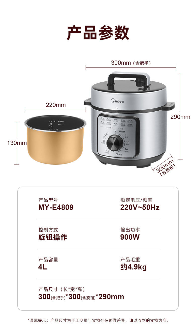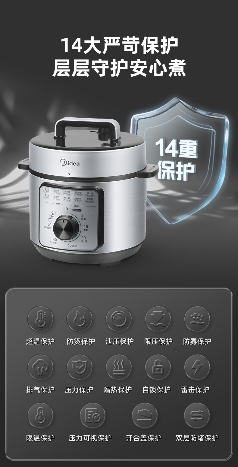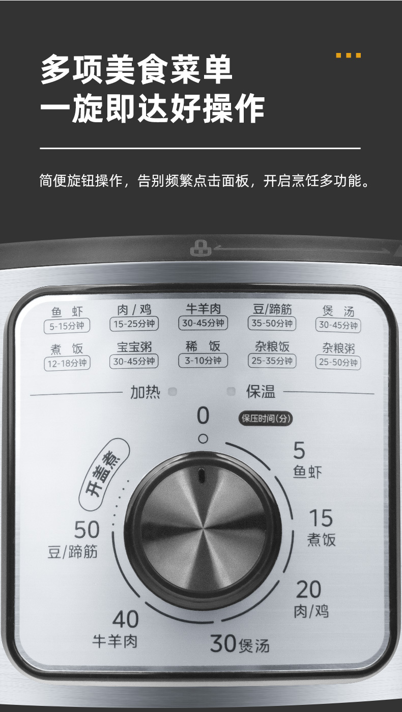 电压力锅家用4升5升高压锅不粘锅迷你多功能煮饭锅旋钮操控