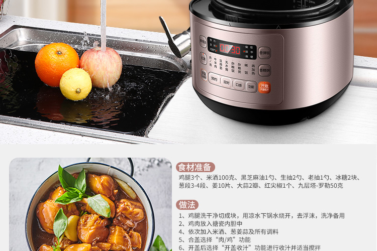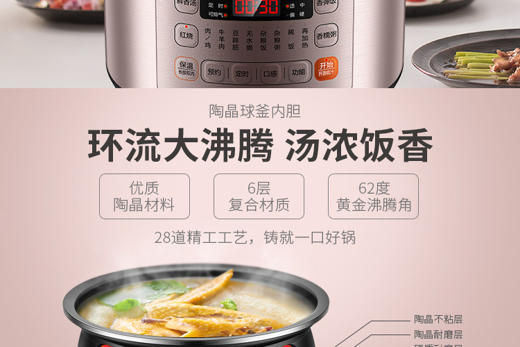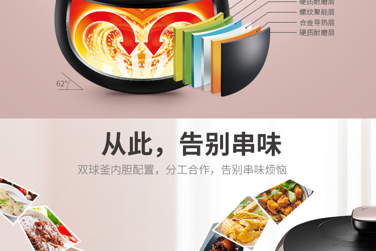 电压力锅高压锅家用5L双胆3-6人大容量多功能预约智能电饭煲